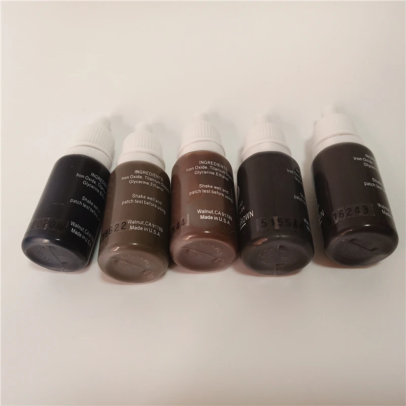 Набор чернил для татуировок, 5 шт., микропигмент для перманентного макияжа, подводка для бровей, губ, коричневый, черный, шоколадный цвета
