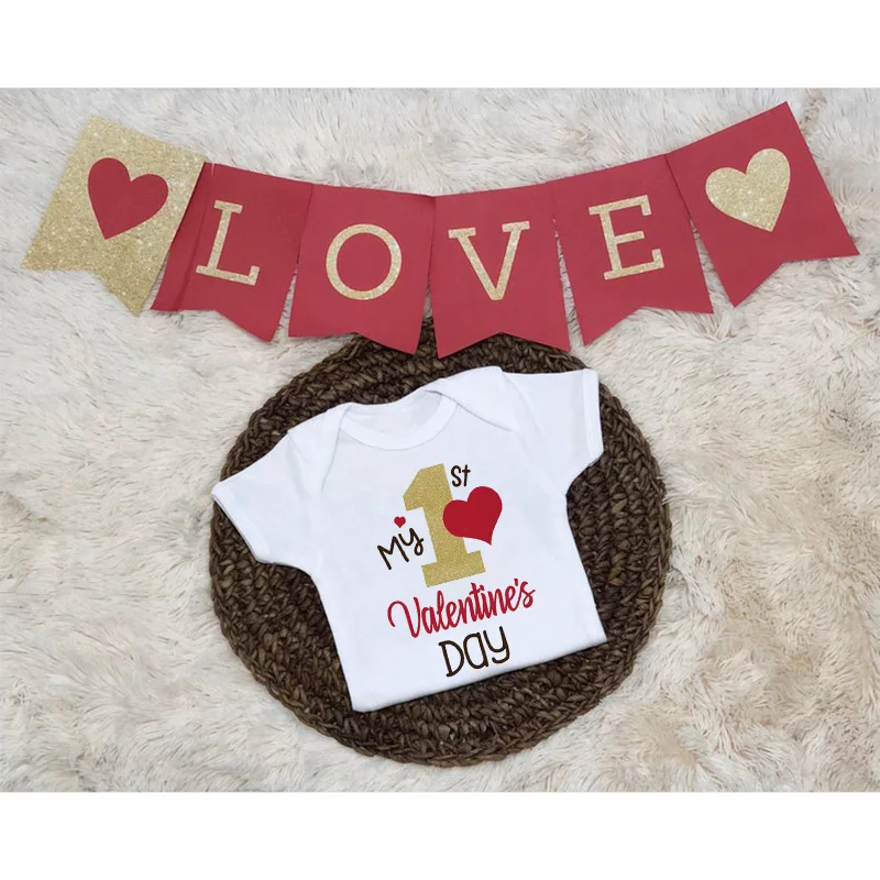 Мой первый день Святого Валентина, комплект детской одежды для младенцев, для маленьких мальчиков и девочек, подарок на день Святого Валентина Детские ползунки с рисунком одежда на возраст от 0 до 24 месяцев