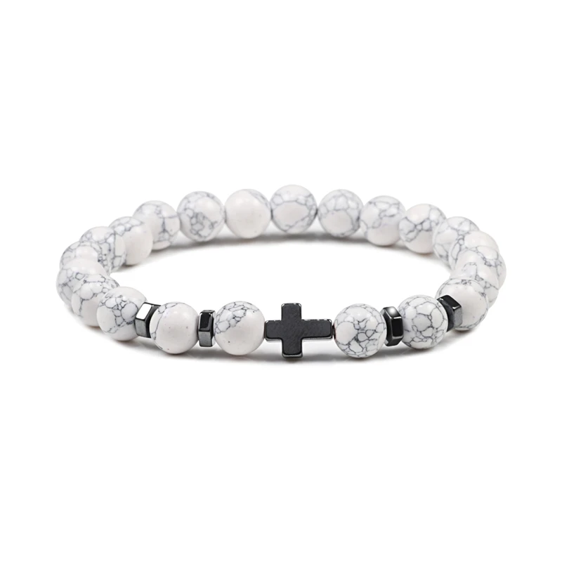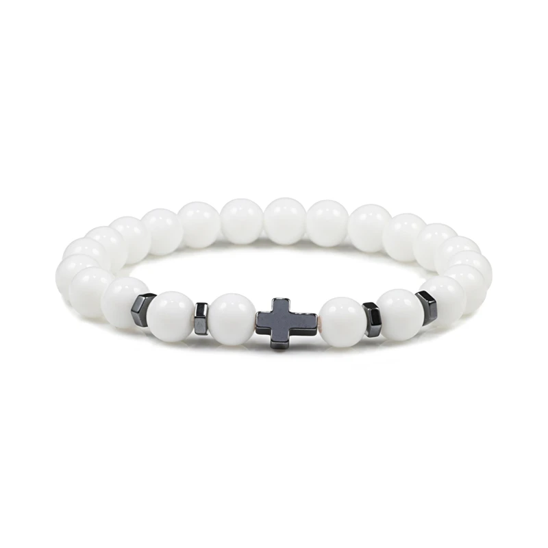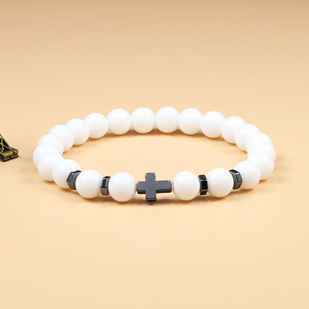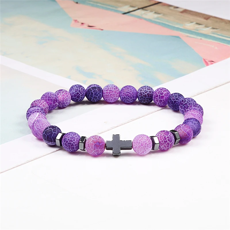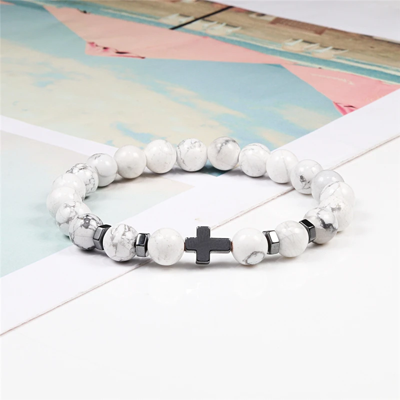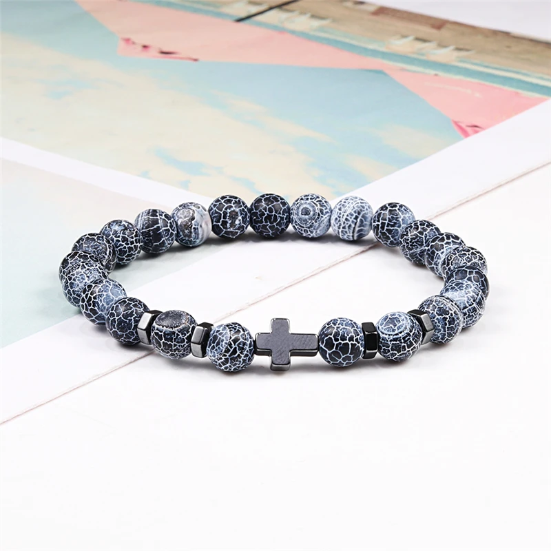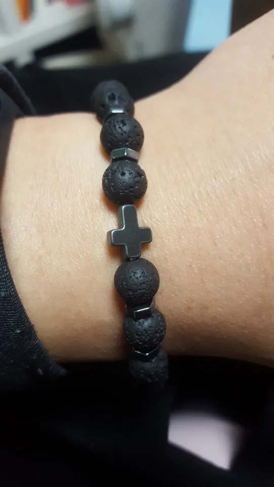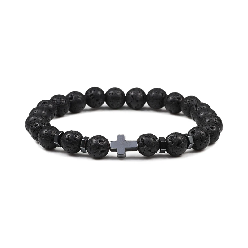 Дропшиппинг Горячие мужские натуральные бусина из лавового камня браслеты гематит крест четки для медитации и молитвы браслет с Иисусом женские украшения для йоги