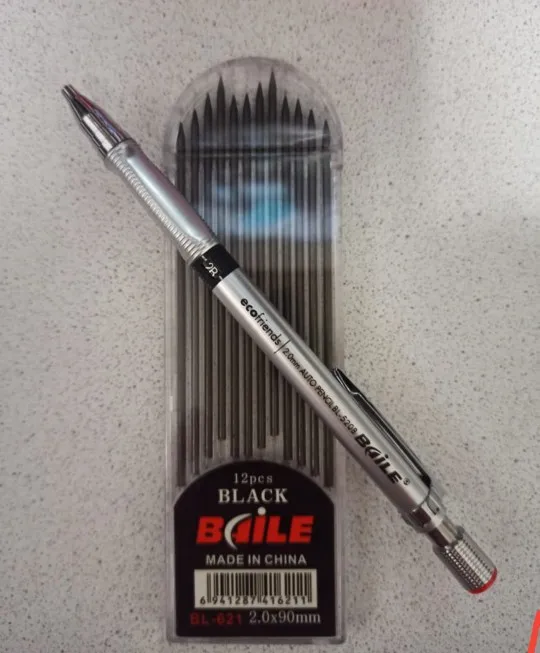 Хорошие кошельки, работает очень хорошо. Он ничего не весит, поэтому я полагаю, что его конструкция будет сделана из пластика в основном. Очень хорошо рисовать и рисовать, кошельки поставляются с серой миной. Рекомендуется.