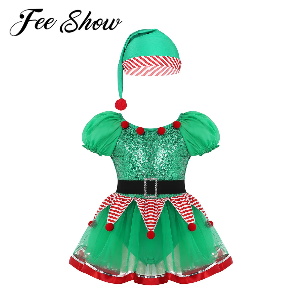 Особенности: Костюм изготовлен из полиэстера, пайеток и сетчатого материала, ручная стирка. Таблица размеров означает возраст для девочек, но только для общего руководства. Короткие пышные рукава, круглый вырез, украшенный помпоном спереди. Блестящий лиф с блестками. Талия с короткой баской. Прилагаемый пояс с Стразы искусственный мех Пряжка акценты. Вырез сзади с застежкой. 3 слоя платье с пачкой из сетки крепятся вокруг талии: основной сеточный слой холодного в ленте с отделкой пайетками. Со встроенными днями. Поставляется с подходящей шляпой. Отличный праздничный подарок для вашей девочки. Подходит для рождественского платья, тематические вечерние, сцены, фотографии и т. д.