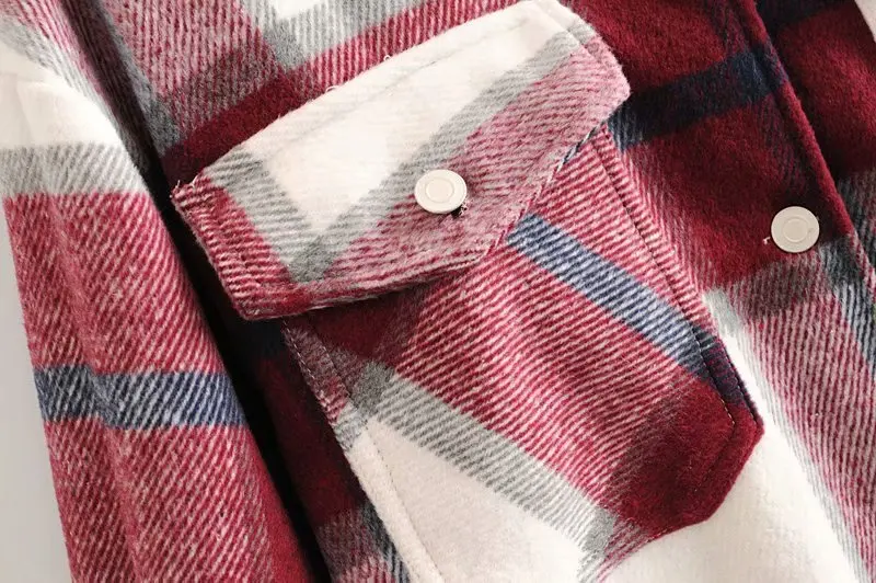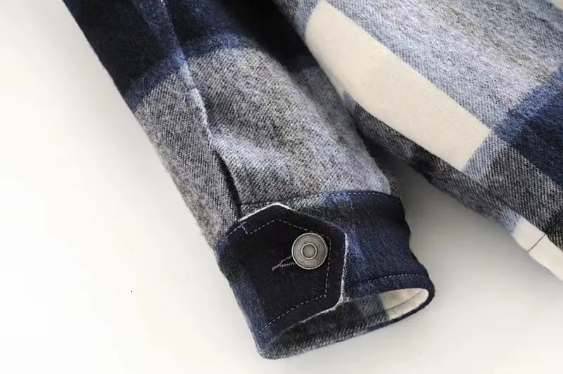 Зимняя клетчатая рубашка, свободная шерстяная верхняя одежда оверсайз, женская винтажный топ на пуговицах