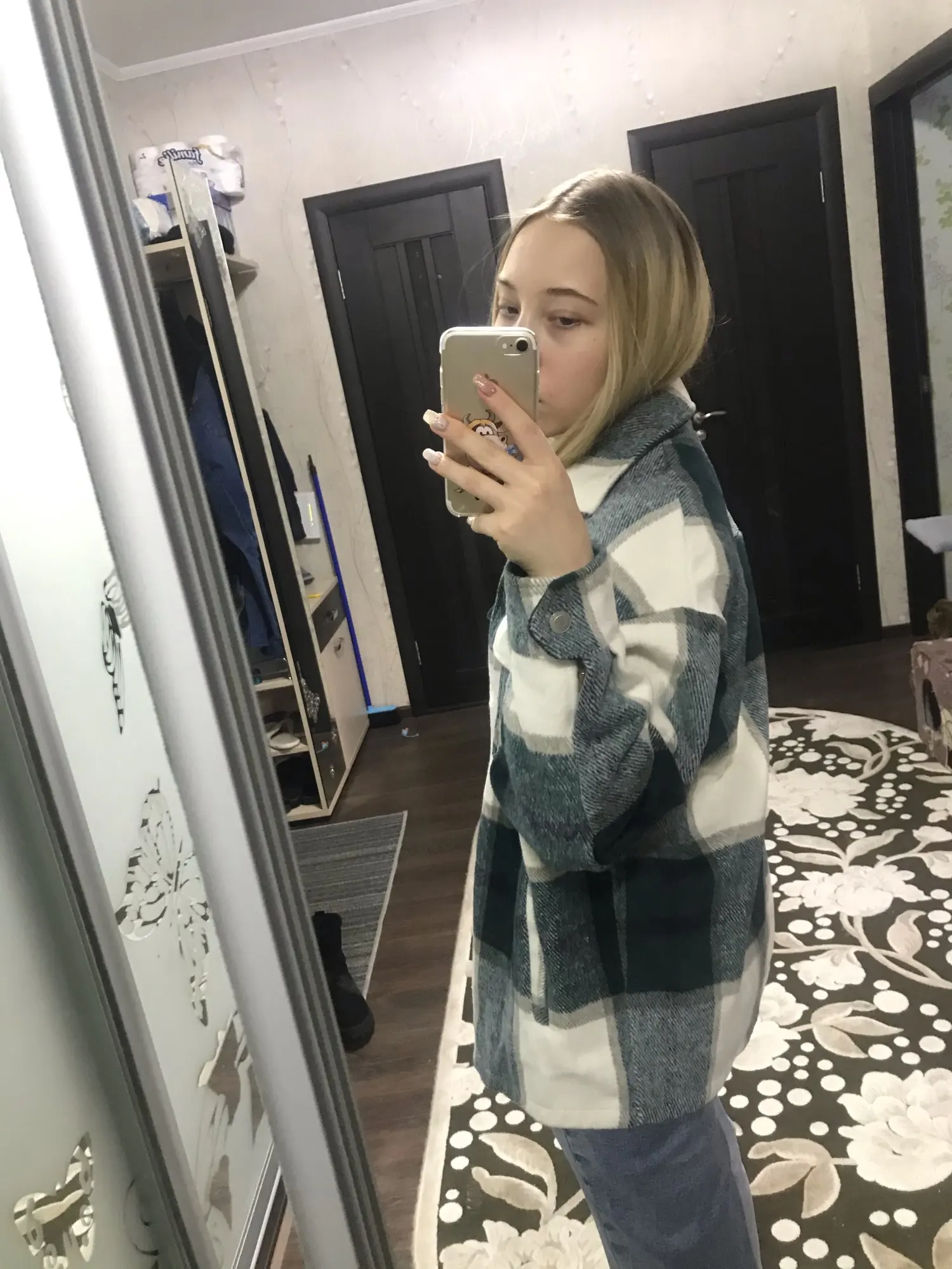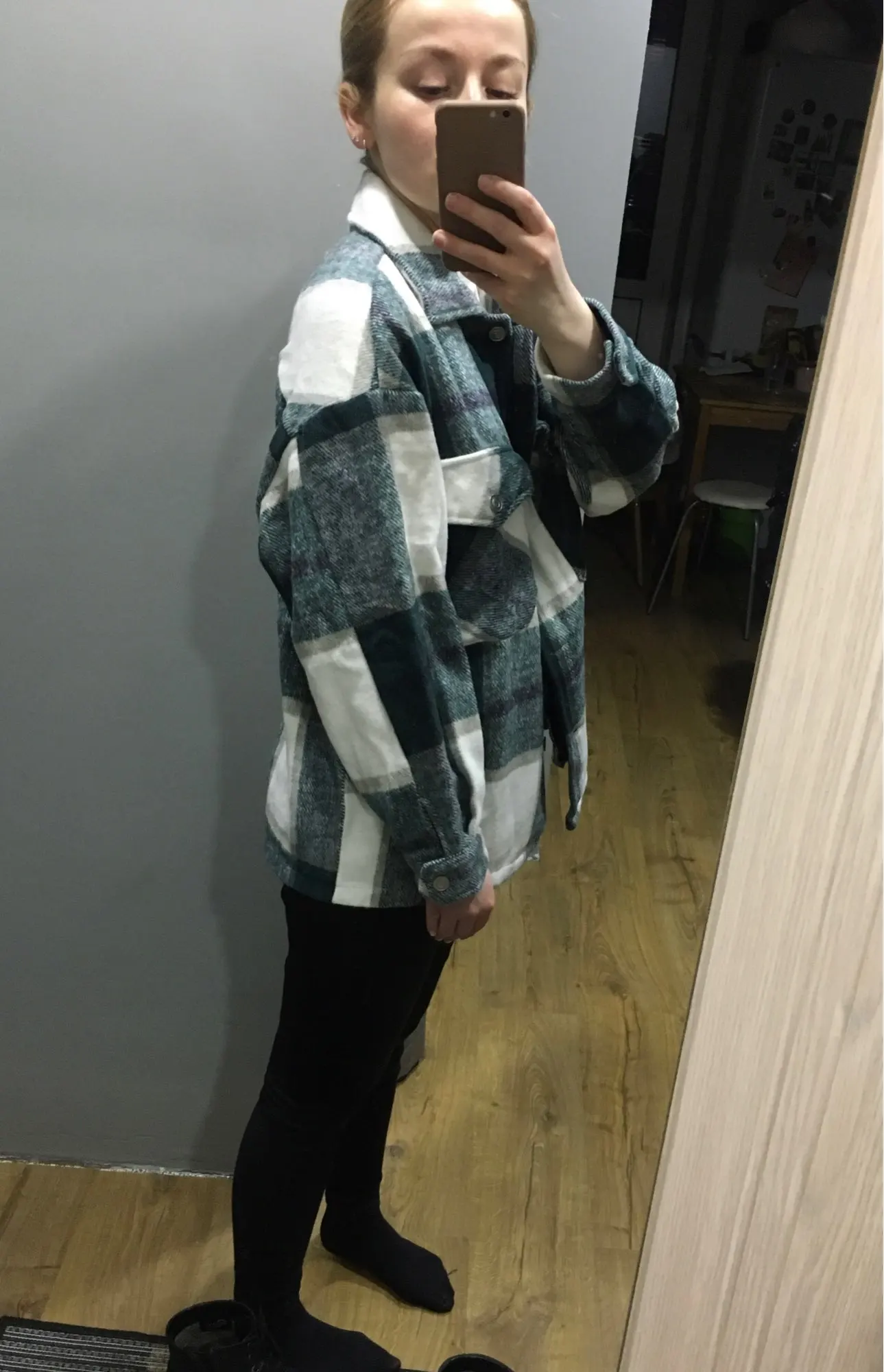 Рубашка классная, взяла большой размер, чтобы носить как куртку. Рост 165, попу отлично закрывает) Продавец долго отправлял и как-то долго шла. Дольше, чем обычно. Не первый раз беру в этом магазине вещи, обычно доставка дней 8, в этот раз дней 20, может быть из-за новогодних праздников. А так всё очень понравилось)