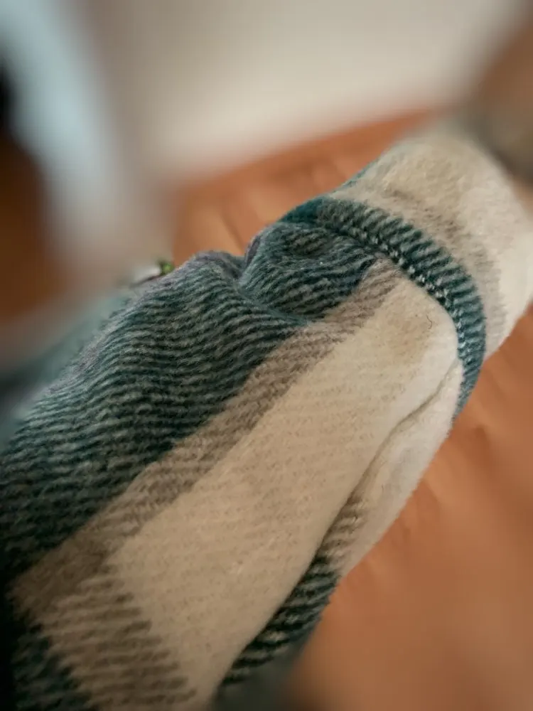 Очень плотная тёплая рубашка, немного колючая, цвет насыщенный. Местами торчат нитки и в некоторых местах необработанны края, в целом рекомендую