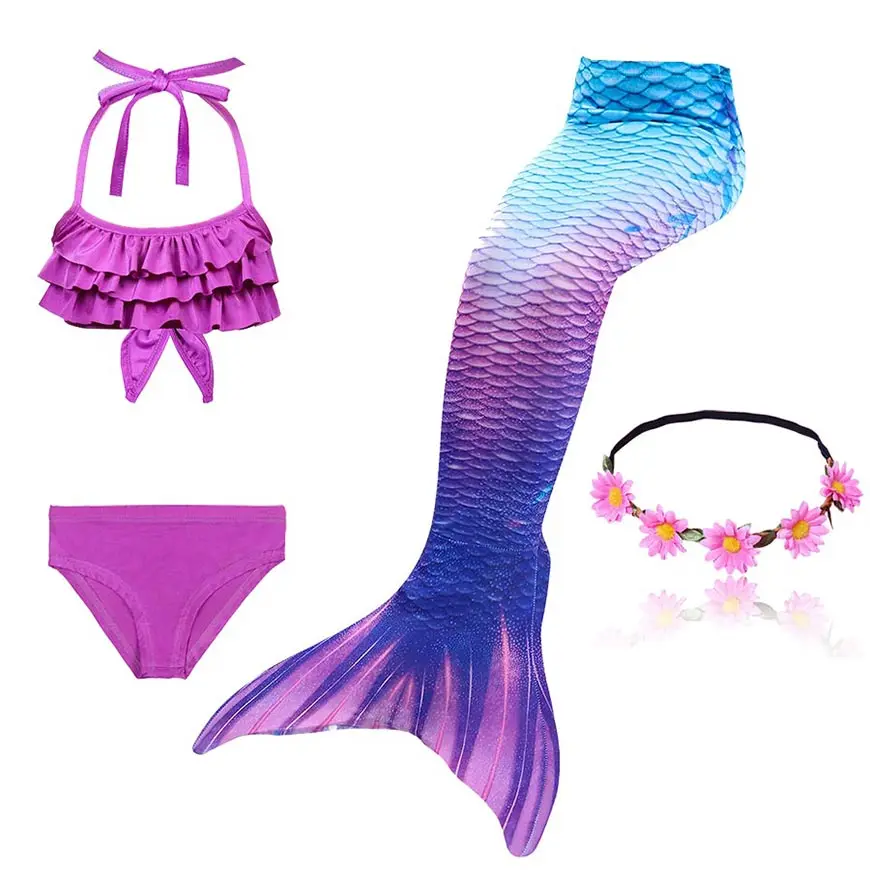 Детский костюм Русалочки Ариэль, купальный костюм для девочек, хвост русалки, без моноласта