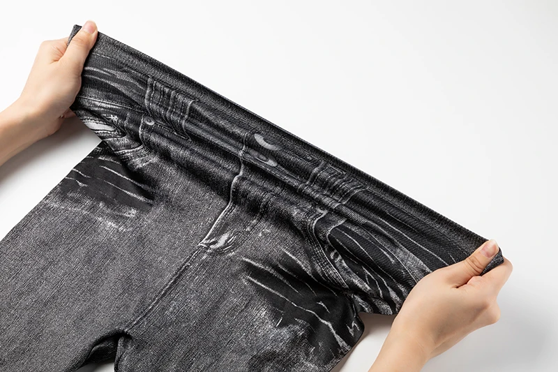 Новые модные женские леггинсы из искусственного денима с высокой талией, обтягивающие леггинсы, сексуальные длинные джинсы с принтом, леггинсы для фитнеса, повседневные узкие брюки