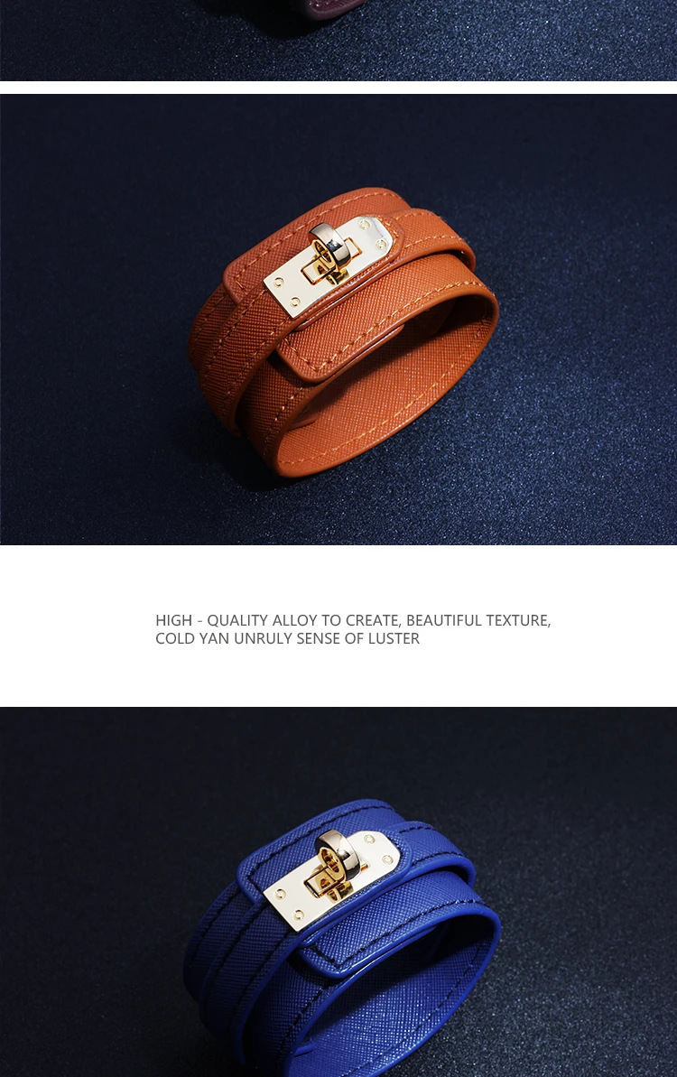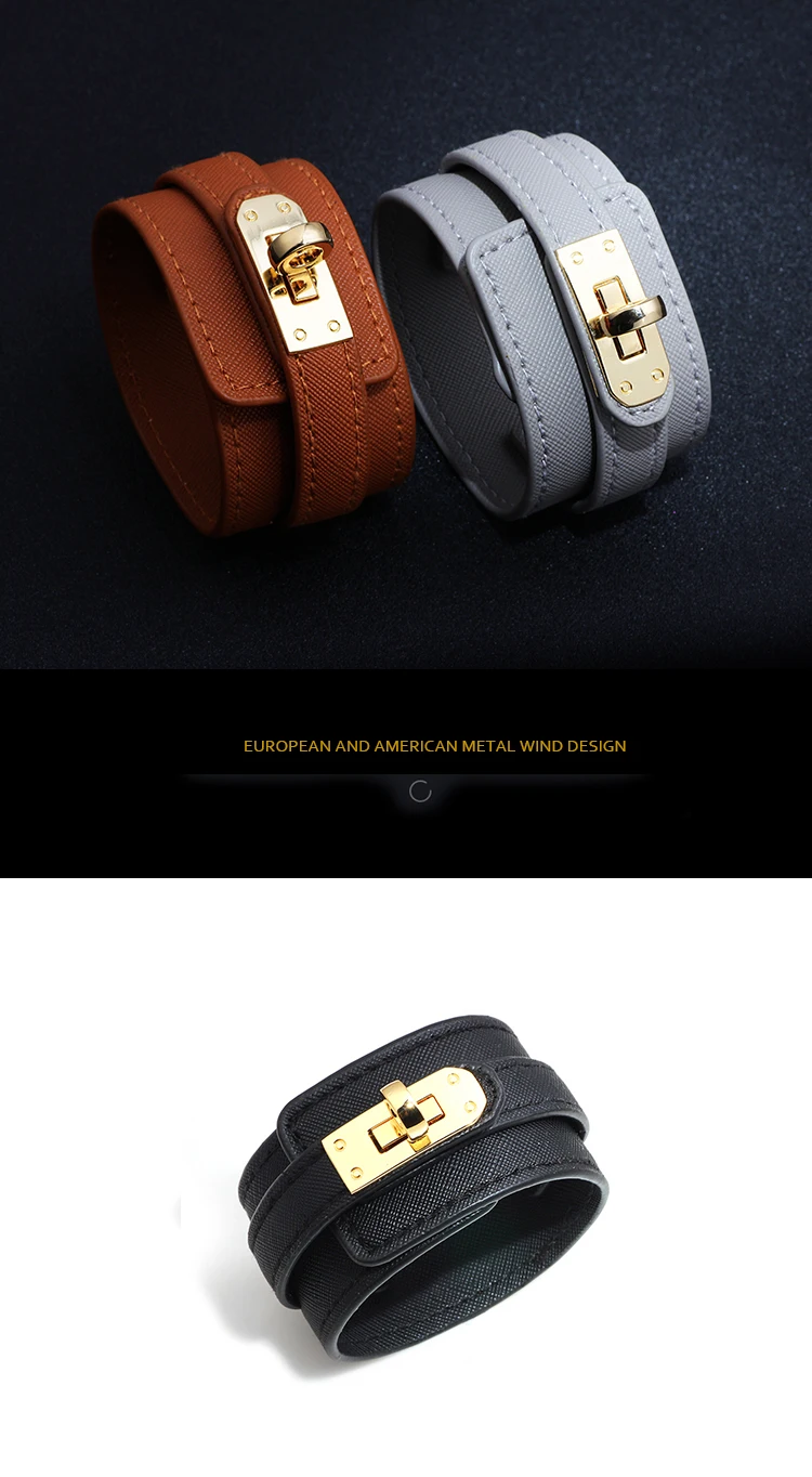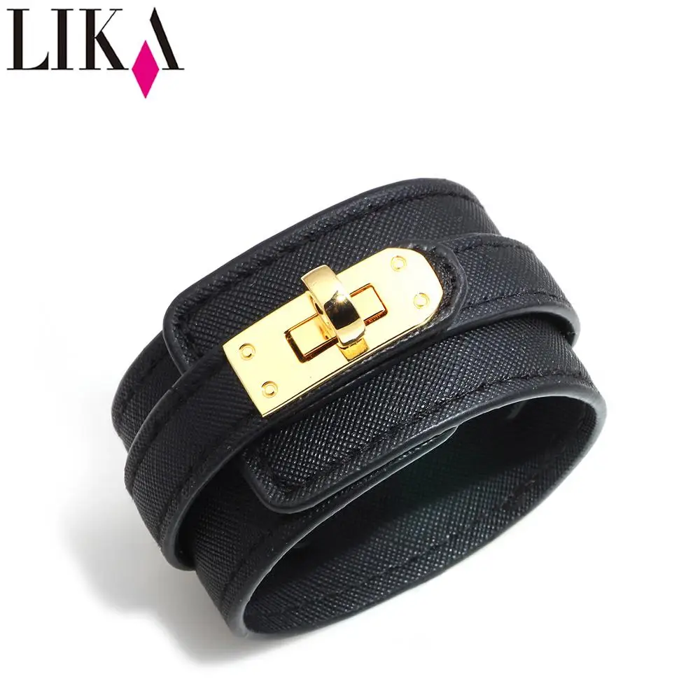 LIKA новый модный кожаный браслет с золотой пряжкой для женщин регулируемые браслеты широкий браслет обруча для женщин аксессуары