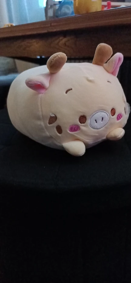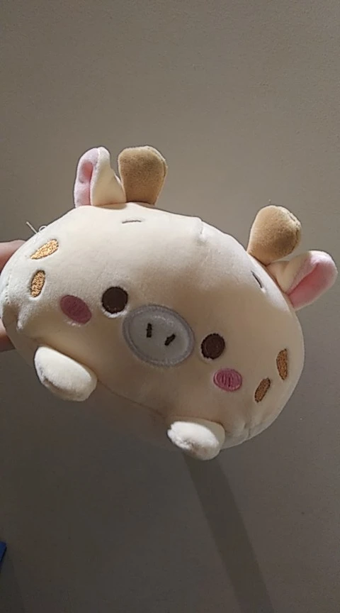 tiene más cara de cerdito que de jirafa, pero es súper suave. A mi nieto le encanta.