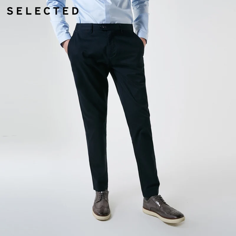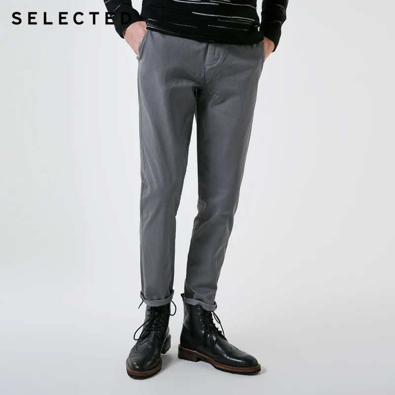 Отобранные мужские хлопковые слегка тянущиеся маленькие темные повседневные брюки в клетку C 419114523