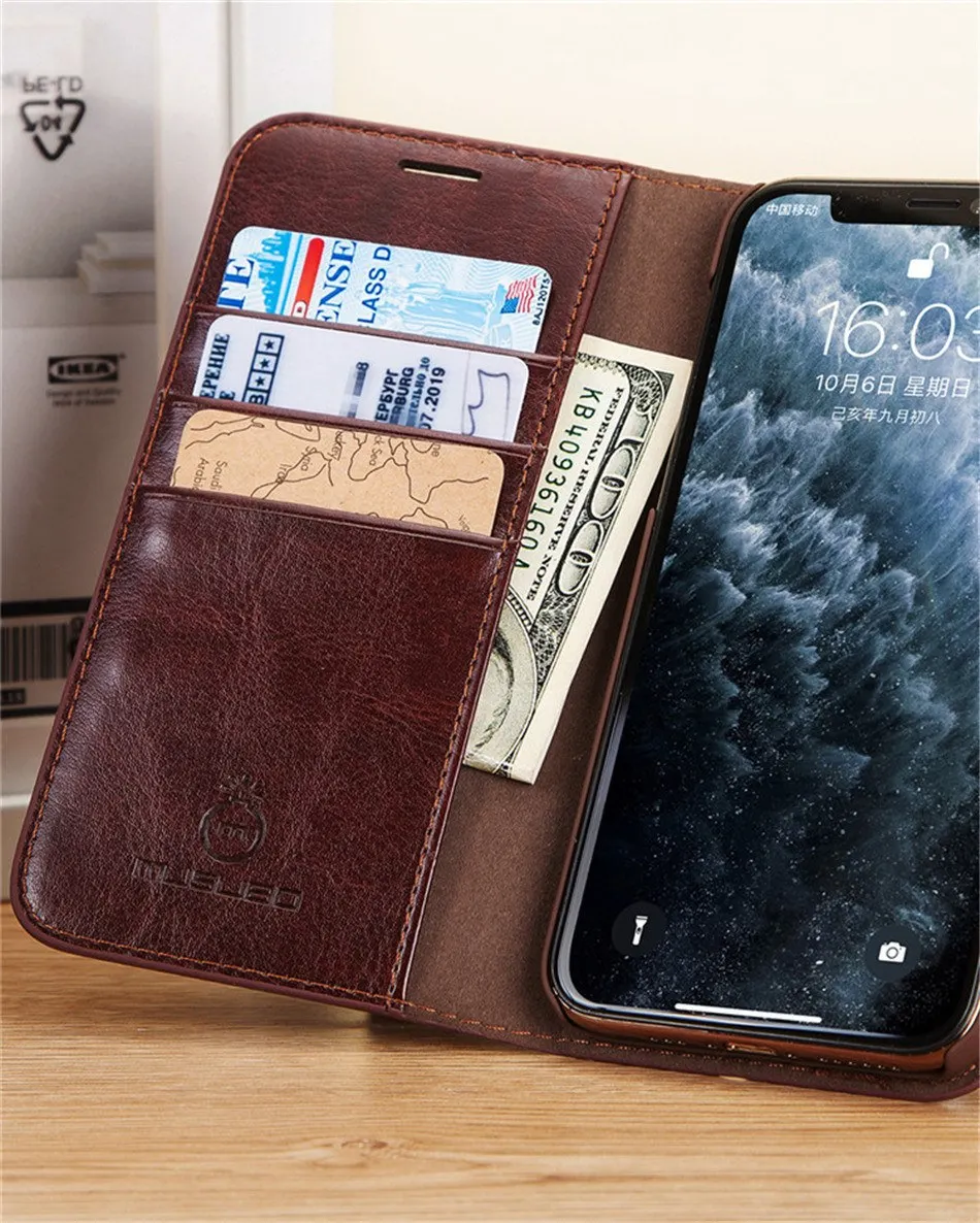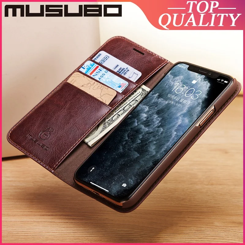 Чехол-книжка Musubo для iPhone 11 Pro Max, XS, XR, 7 Plus, 8, 6S Plus, 6, из натуральной кожи