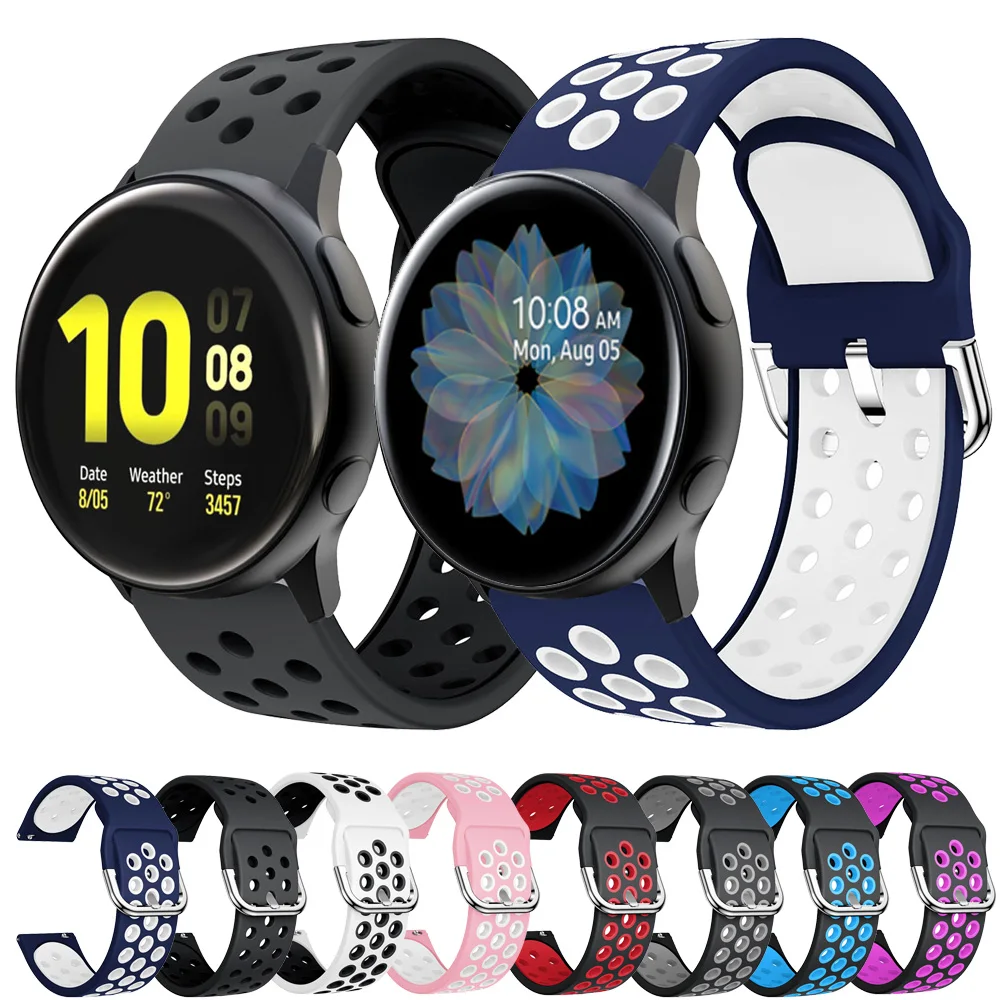 Силиконовый ремешок для часов Samsung galaxy watch Active 2, 40 мм, 44 мм, 20 мм, спортивный браслет для galaxy Watch 42 мм, S2