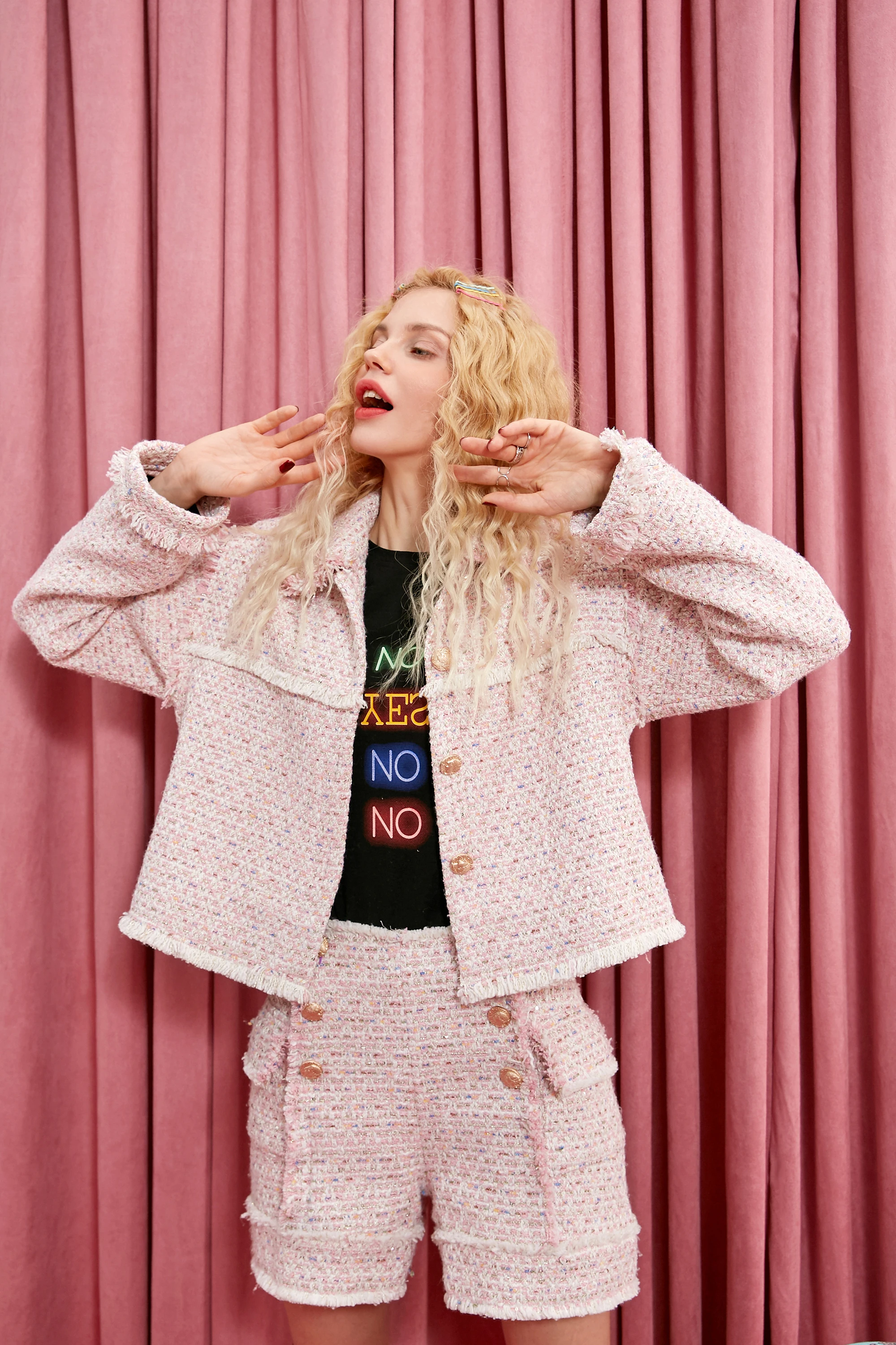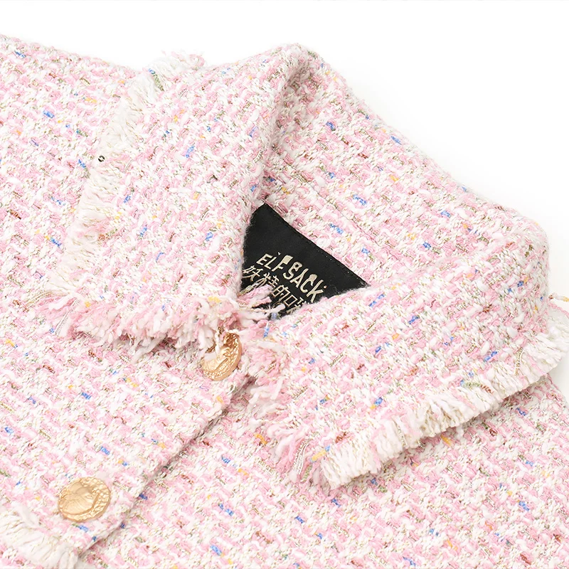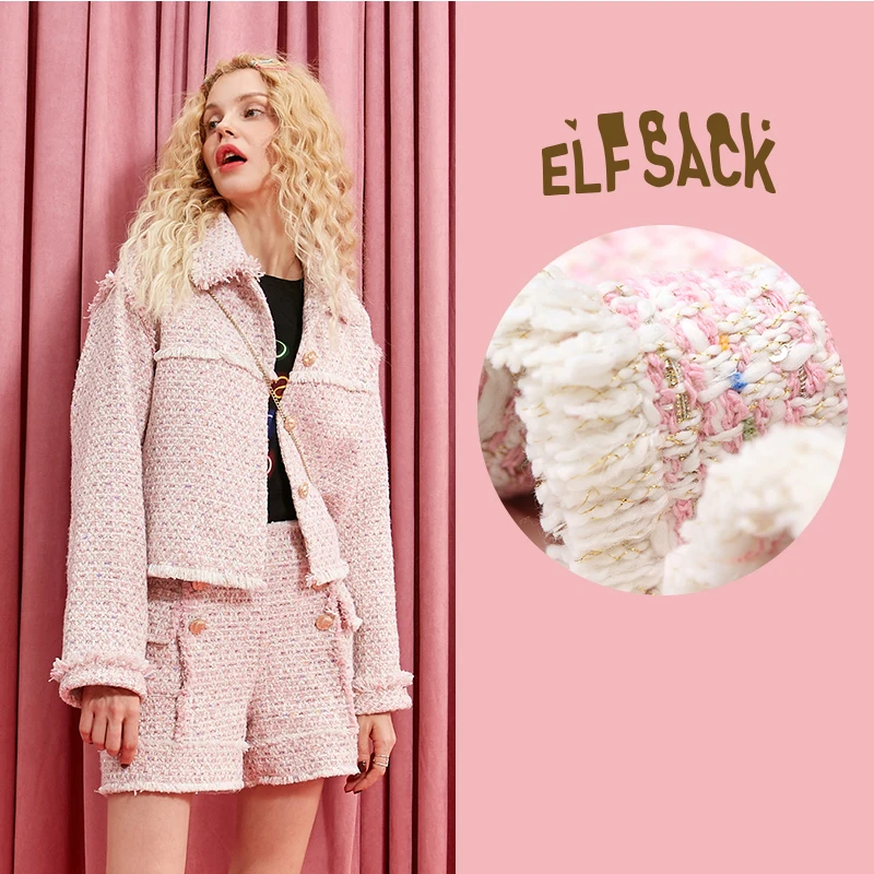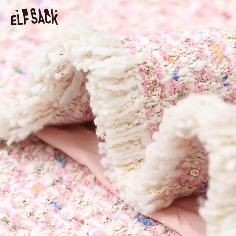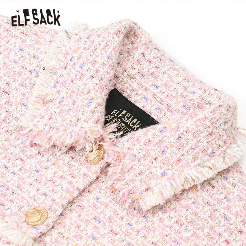 Женская твидовая куртка ELFSACK, розовая элегантная офисная куртка на пуговицах в офисном стиле, зима 2019