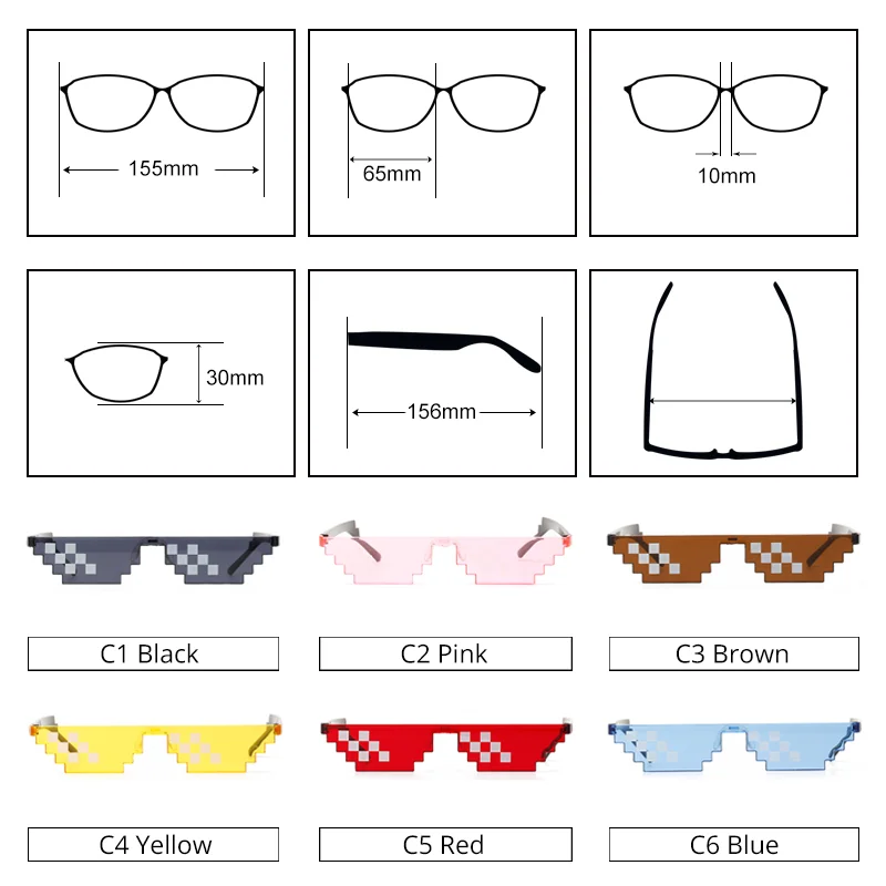 Декоративные пиксельные очки Ralferty для женщин и мужчин, праздничные солнцезащитные очки, брендовые маленьвечерние праздничные очки 8 бит Thug Life MLG Pixelated W009