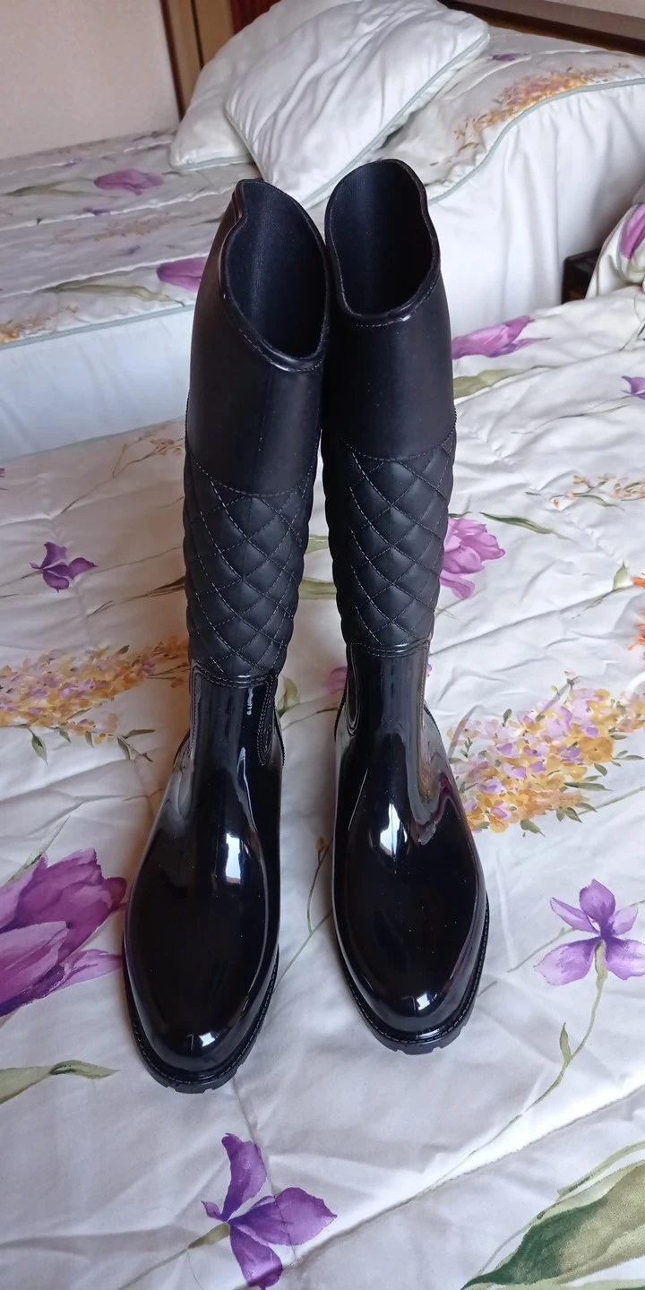 Сапожки очень хорошие, как на фото. Размер брала 6.5, но можно было и 6. Под носок будет очень хорошо. Есть небольшой запах резины. На вид не кажутся грамосткими, очень мягкие. Пришли быстро, спасибо продавцу.