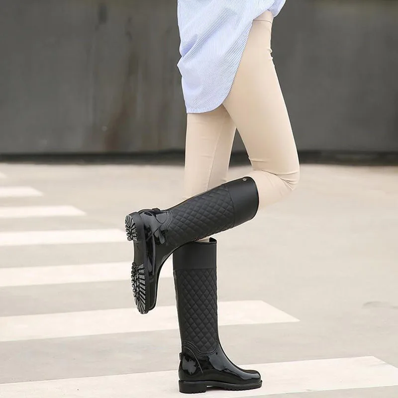 Резиновые сапоги в стиле панк на молнии, Женские однотонные резиновые сапоги, Уличная обувь для воды, 36-41, размера плюс