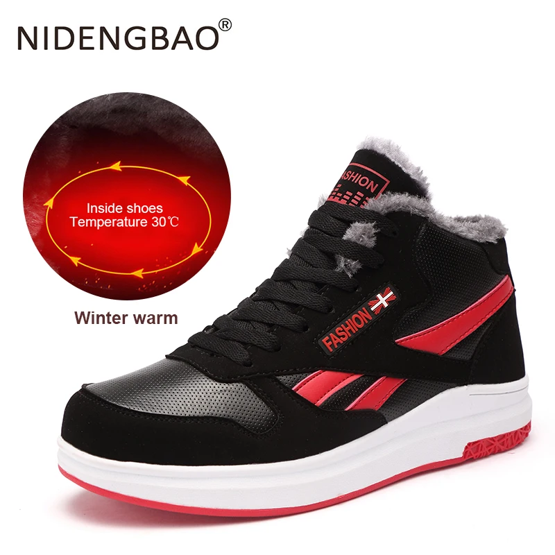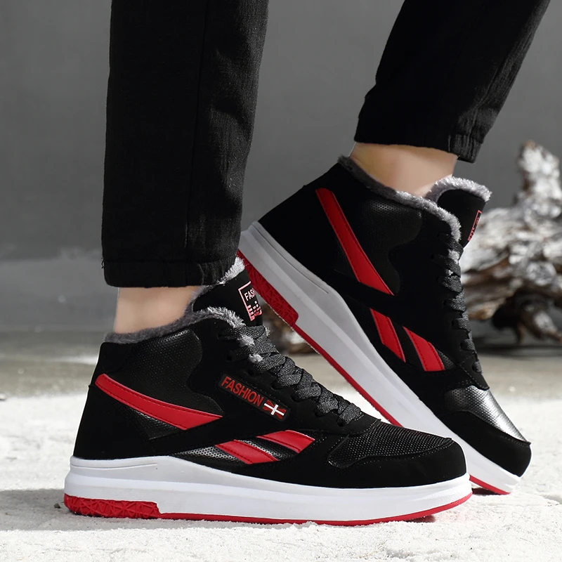 Кроссовки спортивные унисекс, зимние, красные, с плюшевой подкладкой