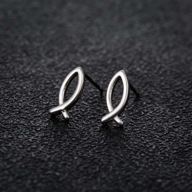 Серьги-гвоздики женские в форме рыбки, простые тонкие геометрически...