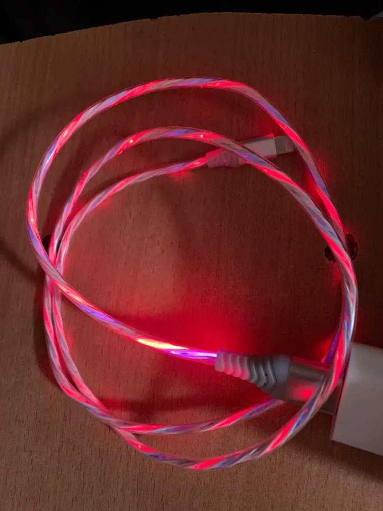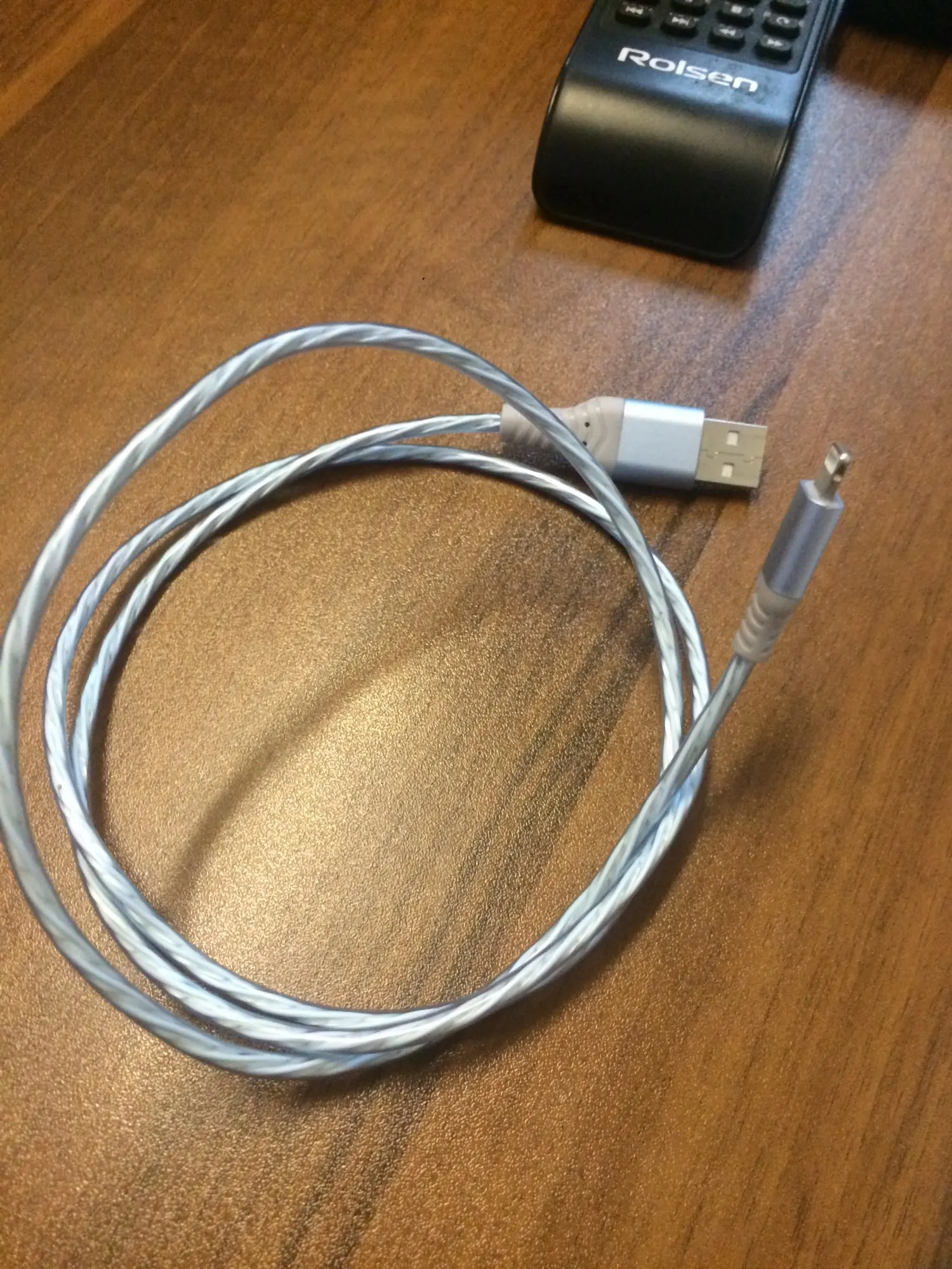 В отличии от другого продавца, тут всё прекрасно - провод не только светится, но и заряжает!