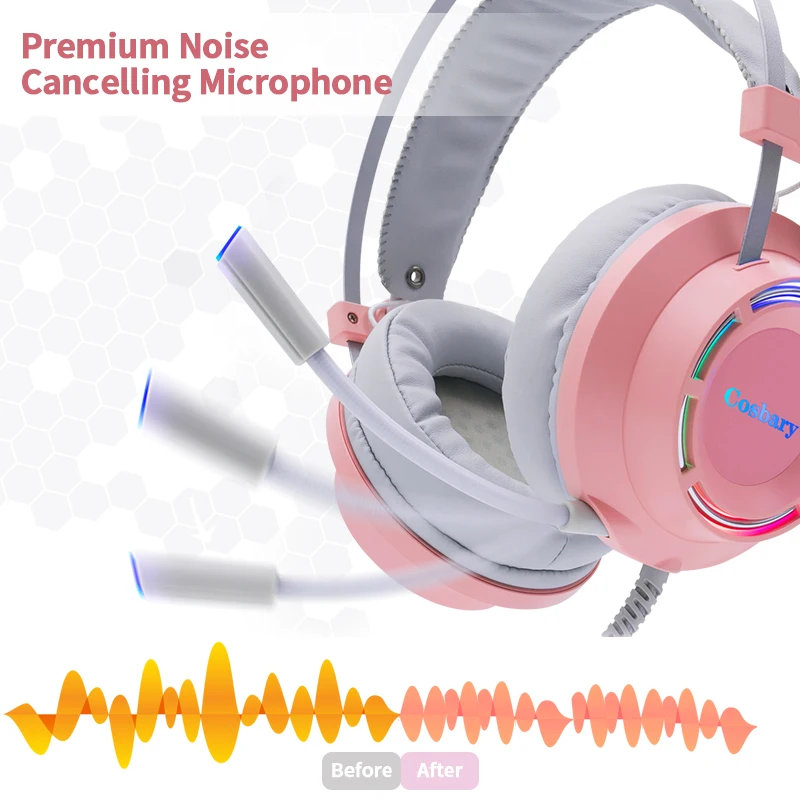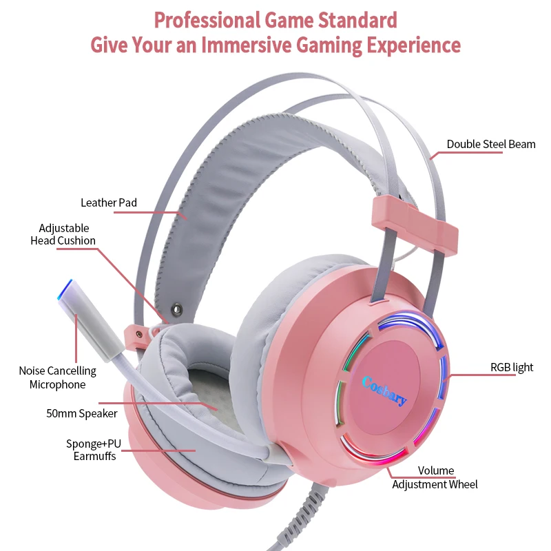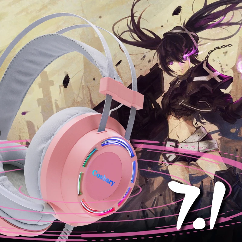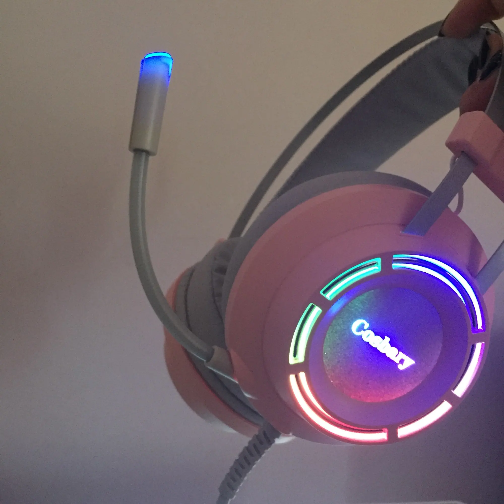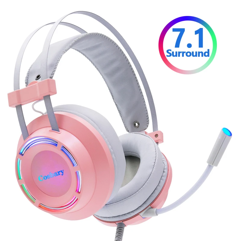 Розовые наушники игровая гарнитура проводная с микрофоном Профессиональный геймер 7,1 объемный звук RGB светильник для ПК компьютера Xbox One