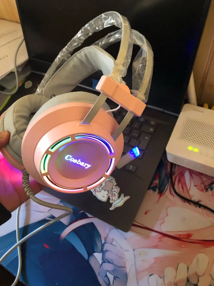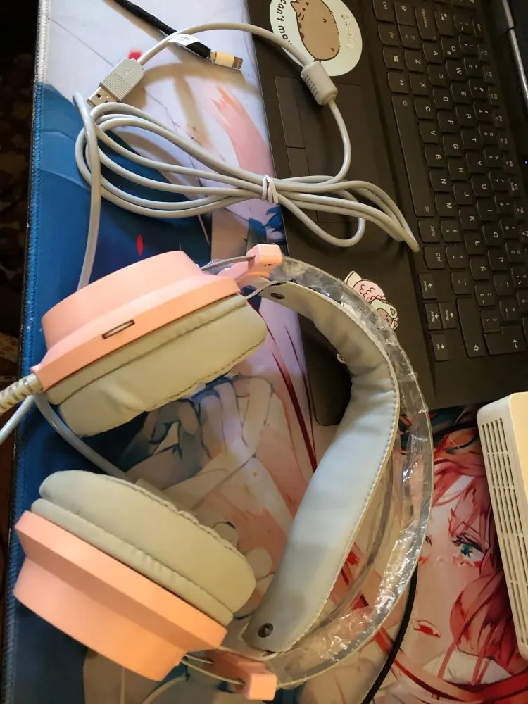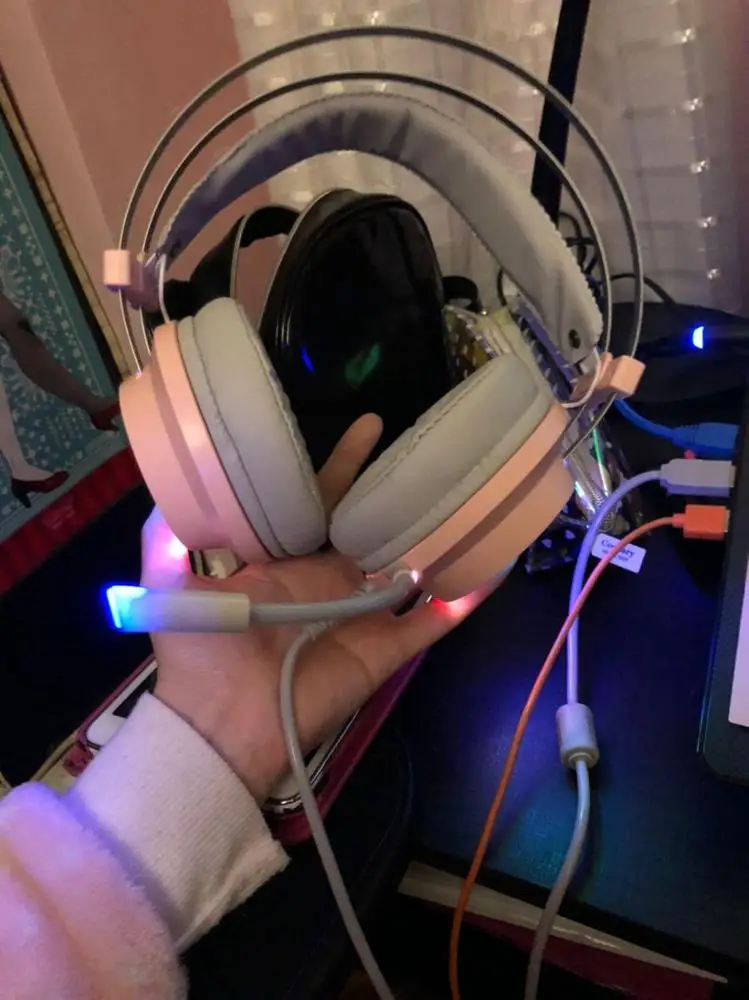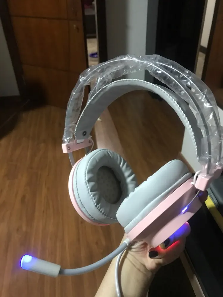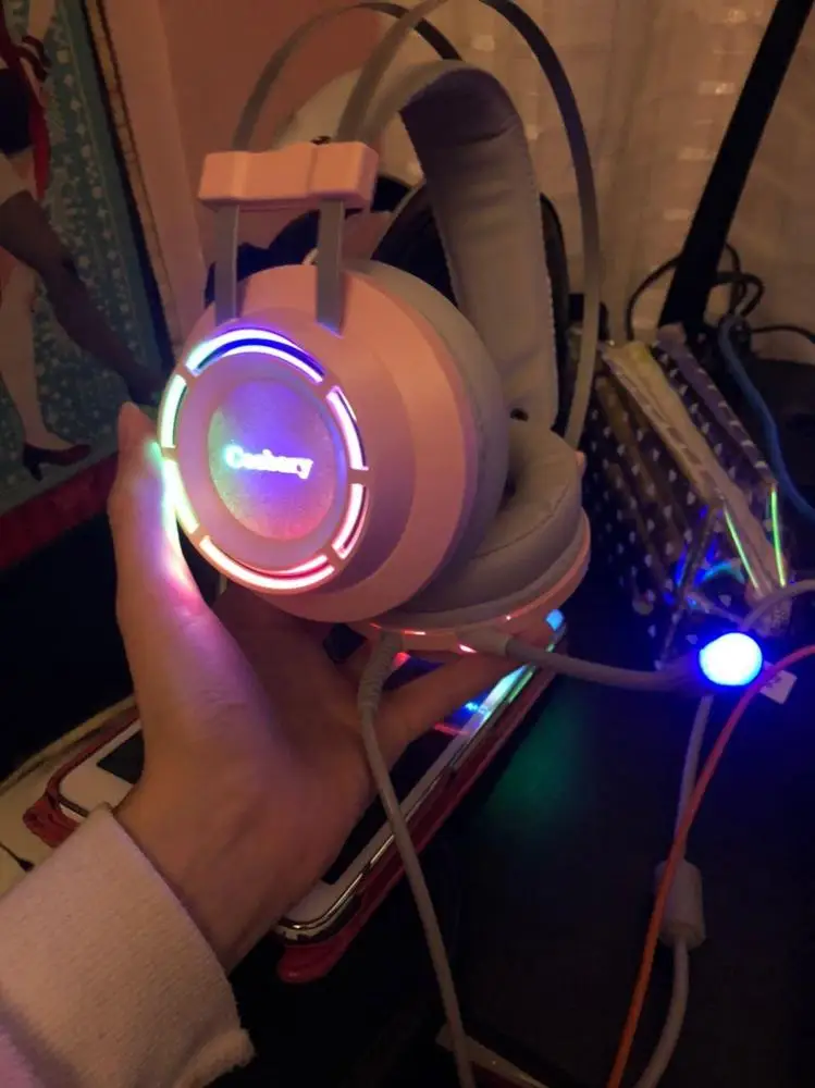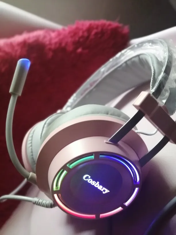 Наушники выглядят точно так же как на картинках, везде всё прекрасно светится работает, даже если прибыла без коробки а в специальной "защите". Как только подключаешь их к компьютеру, начинают светиться. Из-за эпидемии приехало ко мне за месяц, долго но нормально для АлиЭкспресс. Продавец долго почему-то не мог отправить заказ, а отправил через недель две. Звук у наушников очень хороший, есть колесико на левом наушнике сзади чтоб регулировать звук, на компьютере так не сделаешь будет тихим. Микро для меня идеальный, так как он у меня первый. Да и собеседники говорят хороший звук. Будьте готовы что на старых компьютерах из-за возможно разъема usb наушники не будут видны, не знаю почему. На моём новом компьютере всё сразу заработало, а на старом не видит. Товар рекомендую, не бойтесь заказывать без коробки приедет всё равно целым
