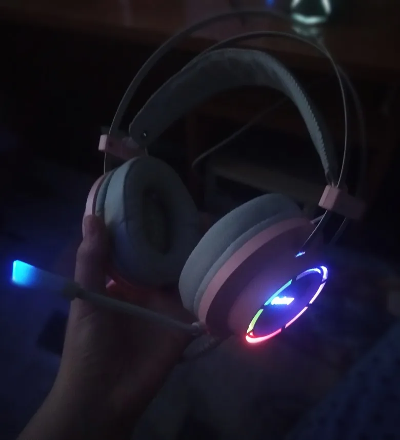 Замечательные наушники, очень милые красивая подсветка. Микрофон хороший , шумоподавление тоже неплохое , звук у наушников громкий и четкий 1000/10 А также нигде не давят , подстраиваются под размер головы