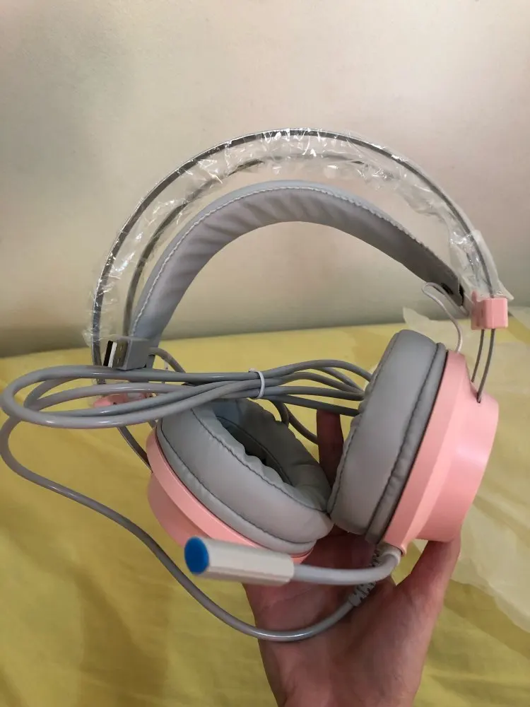 Пришел в коробке, все хорошо работает. Я пользуюсь им уже более одного месяца и до сих пор никаких проблем с ним не было. Кабель очень длинный, но это не проблема. Это большой и удобный, у меня всегда были проблемы с наушниками, потому что они, как правило, маленькие и вредят моим ушам, но не этот, он даже больше, чем мой последний наушник (который был необычайно большим сам по себе). Это мило, цвета очень красивые. Фонари также красивые, и мне они нравятся. Хороший микрофон, звук потрясающий. Я очень доволен этой покупкой.