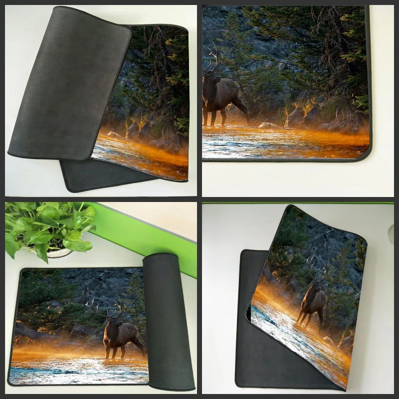Коврик для компьютерной игры Mairuige, коврик для мыши ранним утром, силуэт лося, красивое животное, фото, офисный стол, украшение, резиновый нескользящий