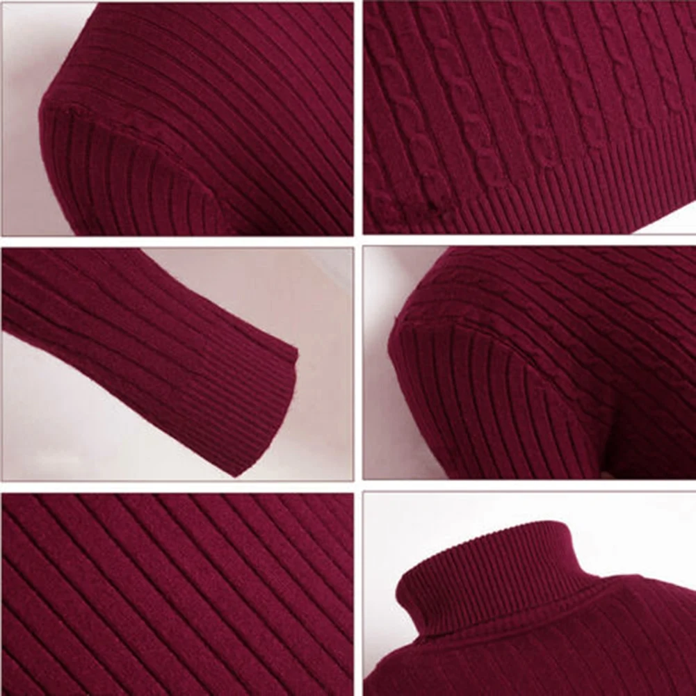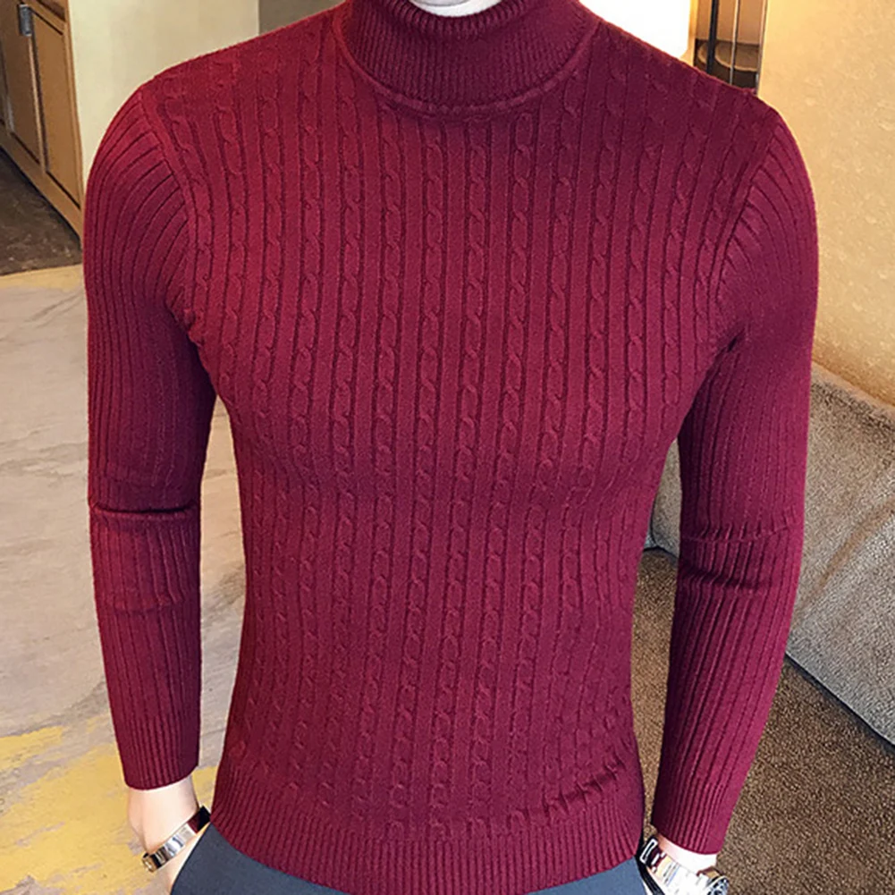 Повседневный мужской зимний однотонный вязаный приталенный свитер с высоким воротом и длинными рукавами