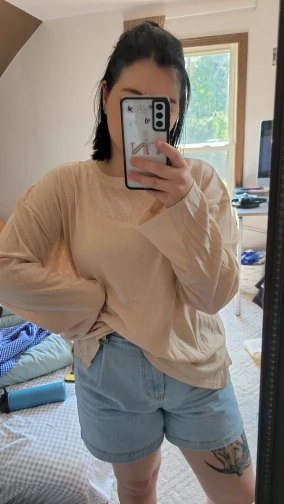Fits nicely, very comfortable, very good quality! I am happy that I ordered this as it is very cute and looks nice with shorts! Thank you so much seller!