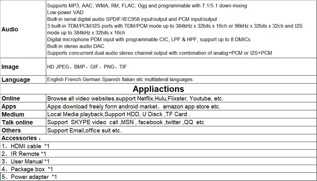 -Поддержка H.265,8K @ 24fps, 4K @ 60fps, HD 2,1, USB3.0;