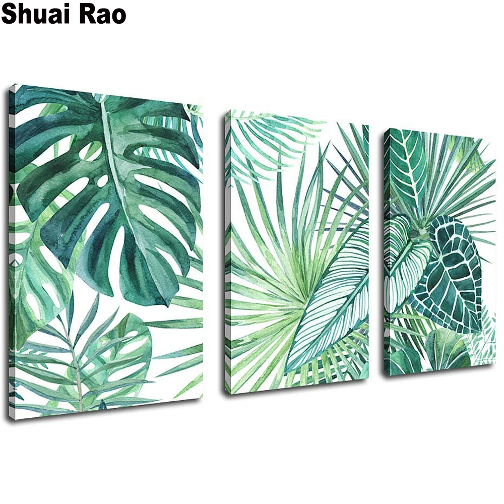 Зеленые листья растение из тропического леса Алмазная Картина Вышивка крестом 5D Сделай Сам полный Алмазная вышивка мозаика набор из 3 предметов,