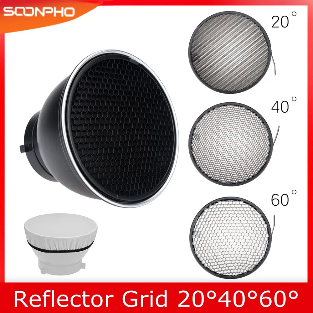 7-дюймовый стандартный отражатель 18 см с сотовой сеткой на 204060 градусов для крепления GODOX Bowens Studio Light Strobe Flash