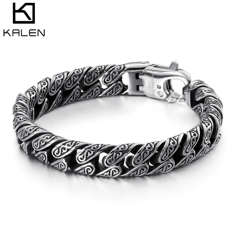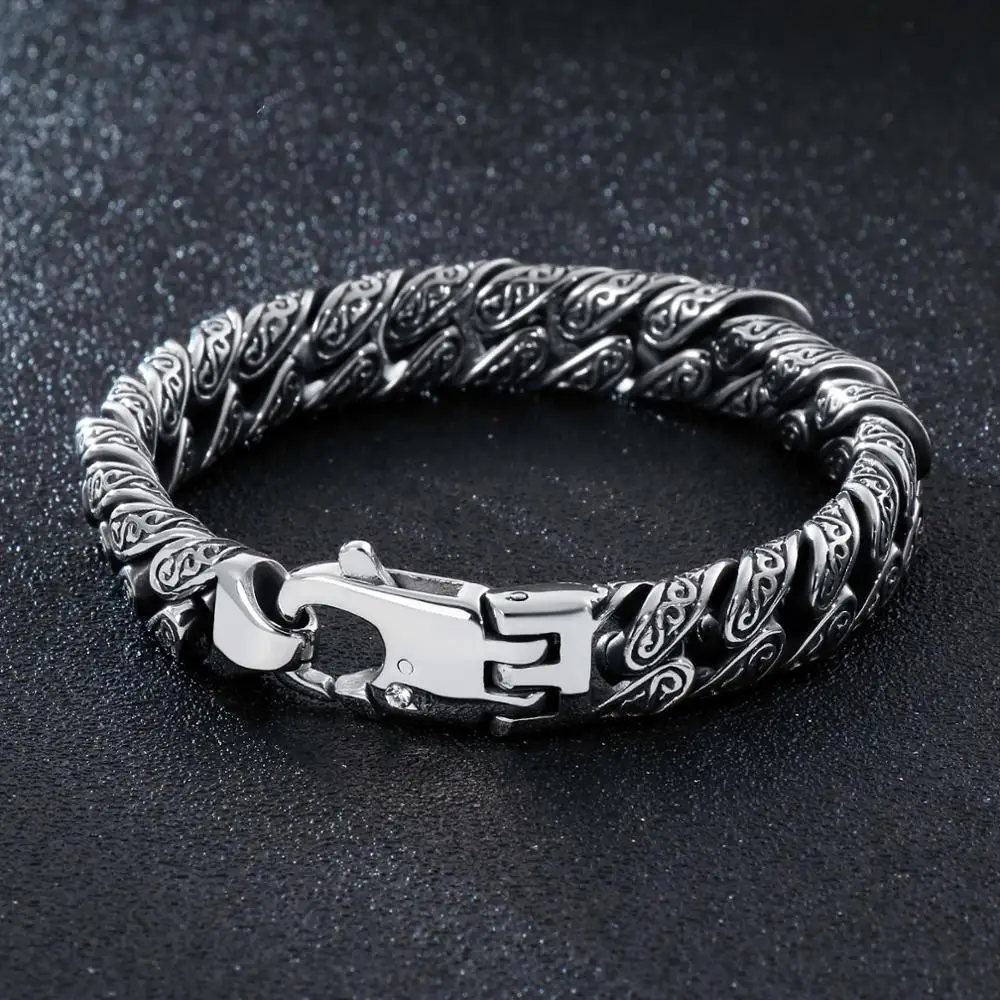 12 мм панк цепочка браслет Для мужчин Нержавеющаясталь таинственный символ очарование в едином положении во время занятий легкой атлетикой, мужской браслет ювелирные изделия
