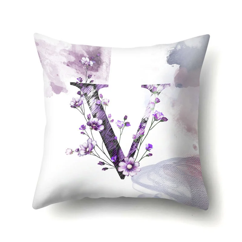 Наволочка для подушки с акварельным рисунком, A-Z букв, цветов, полиэстер, декоративная подушка для дома, дивана, декоративная наволочка, 40852
