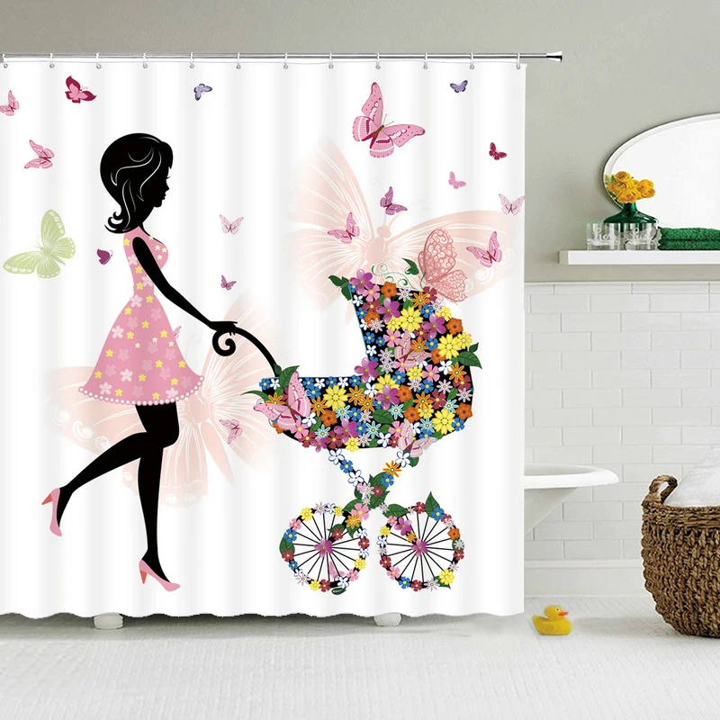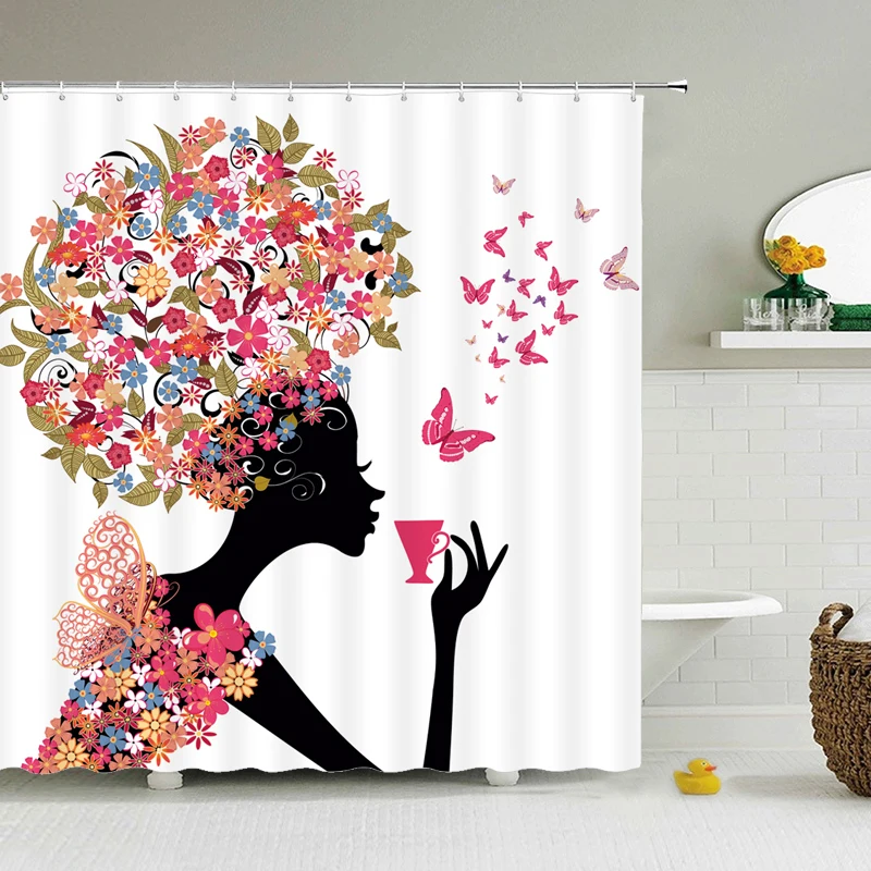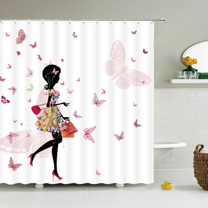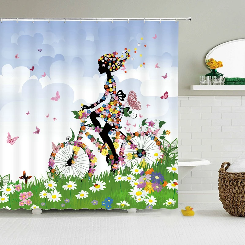 Цветочная сказочная занавеска для душа для девочек, водостойкая занавеска для ванной, милая Девичья занавеска для душа, полиэстер, для ванной, домашний декор, набор крючков