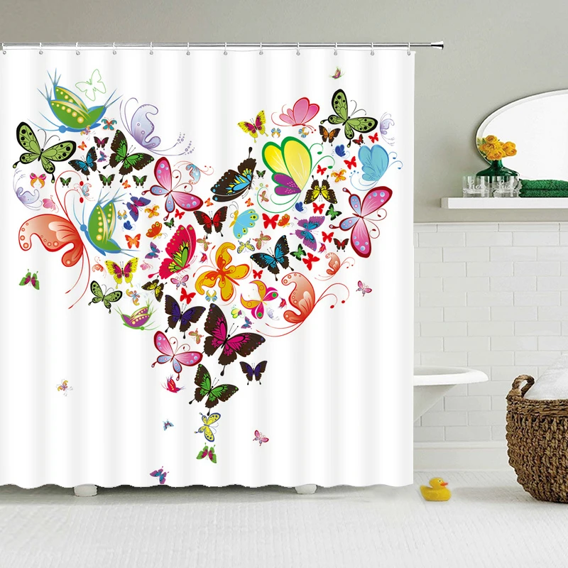 Водонепроницаемая занавеска для душа с изображением цветов и бабочек