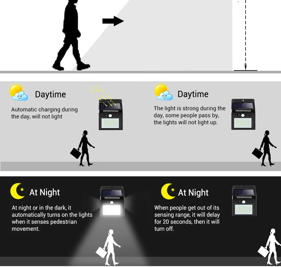 Function 9:Solar Waterproof Wall Light,Solar Motion Sensor Light