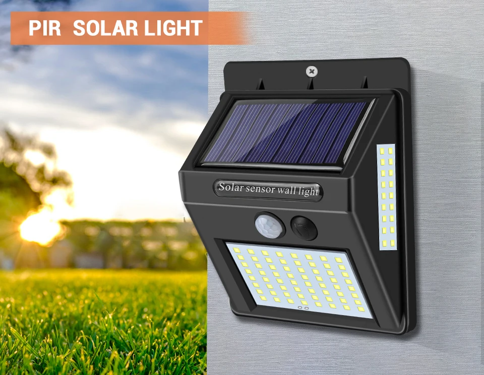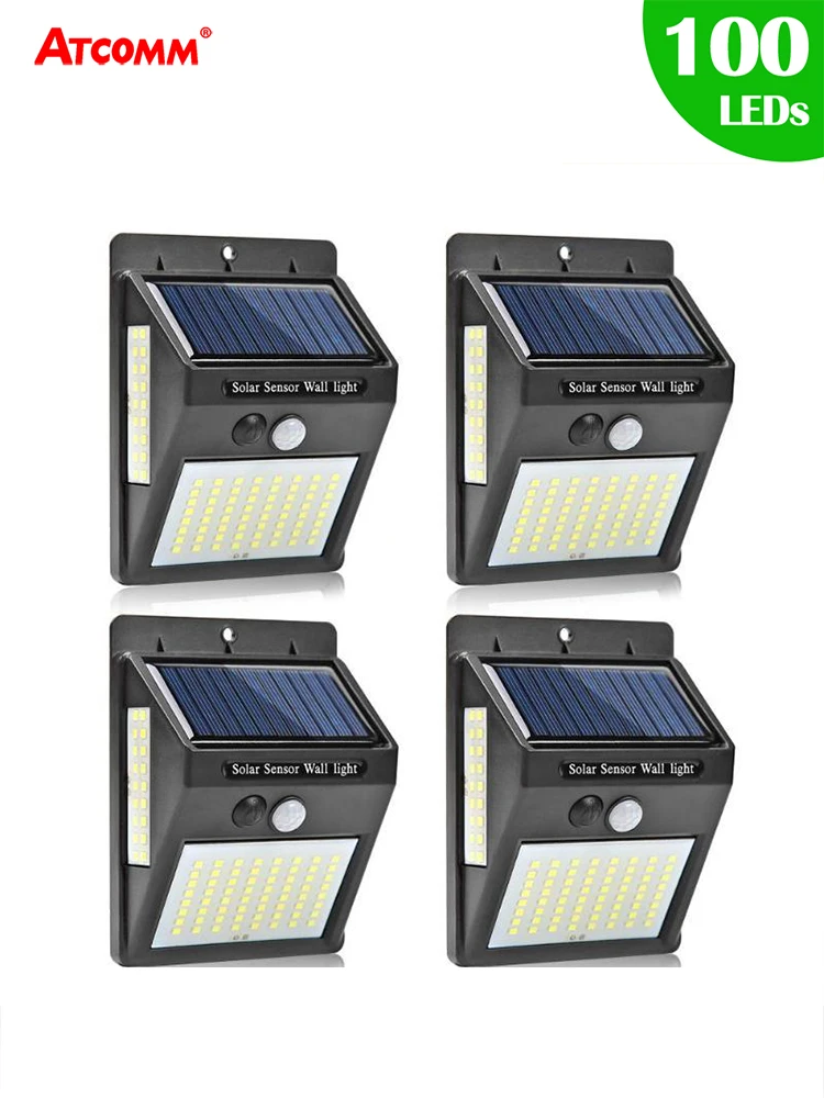 Уличный светодиодный уличный фонарь на солнечной батарее, 100 светодисветодиодный, IP65, Уличный настенный светильник на солнечной батарее для крыльца с пассивным ИК датчиком движения, светильник для сада, дорожек, забора