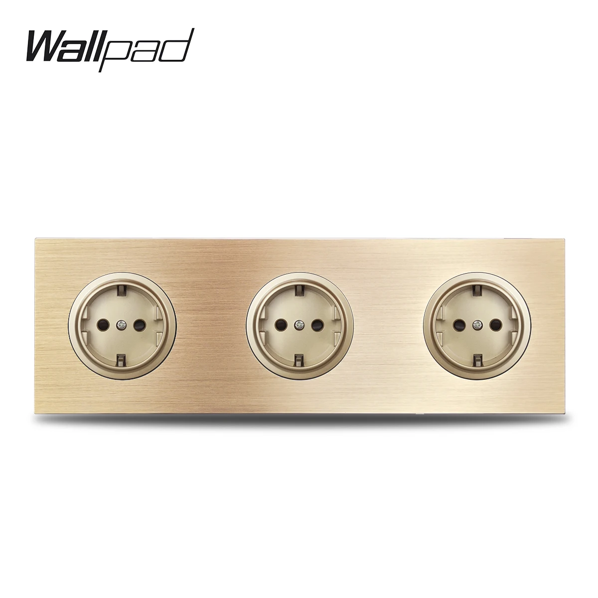 Европейская Тройная электрическая розетка Wallpad L6, немецкая электрическая розетка Schuko, Золотая матовая алюминиевая металлическая панель, 258*86 мм