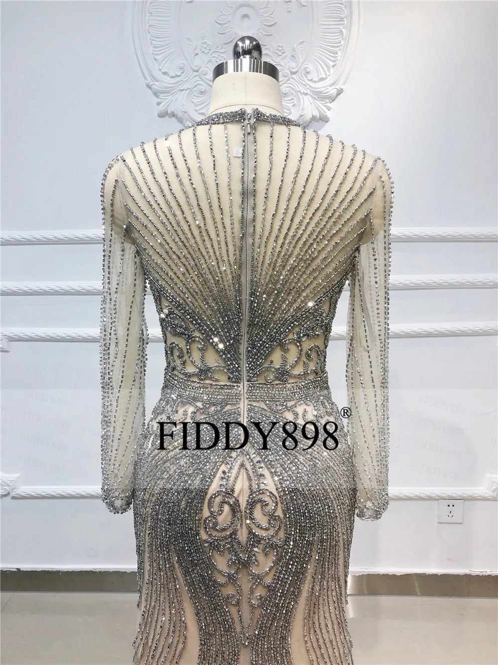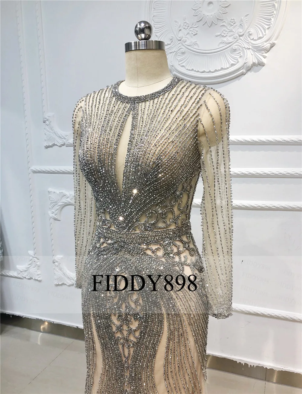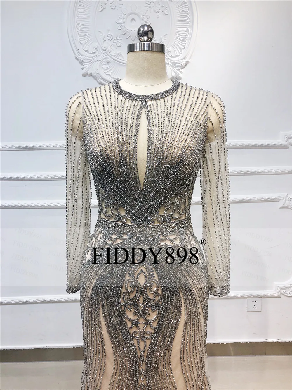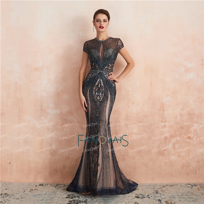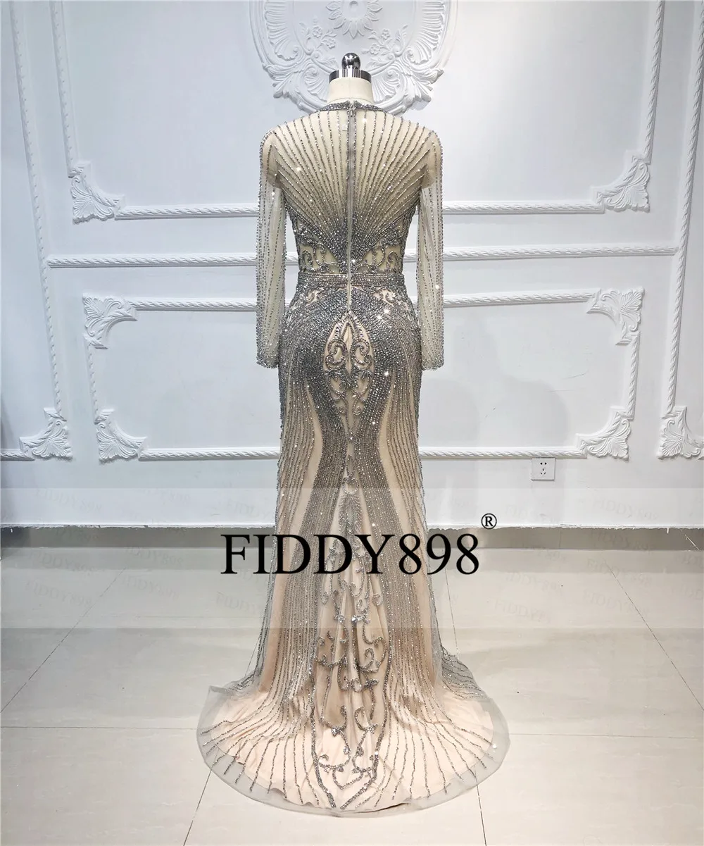 Наличии Роскошные Русалка вечернее платье одежда с длинным рукавом ручной работы из бисера платье для выпускного Дубай торжественное платье Вечерние Платья Vestidos de Fiesta
