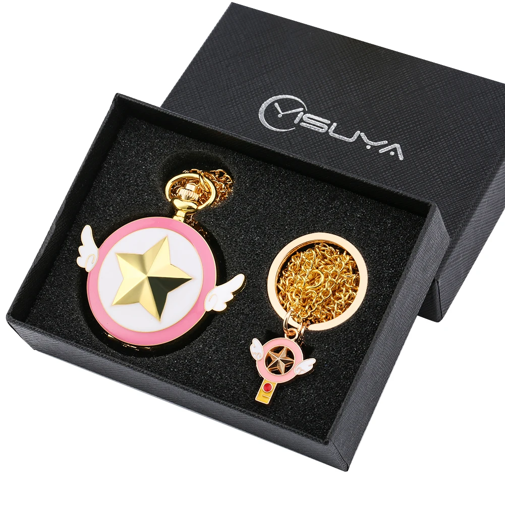 Карманные часы, брелок, подарочный набор, Япония, аниме, волшебная девушка, Сакура, мультфильм, косплей, кулон, часы, часы для девочек, женщин, Рождественский подарочный набор