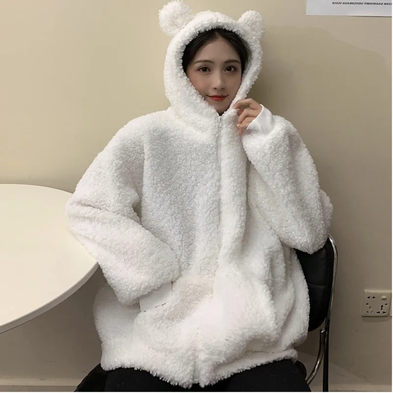 Осень 2022, Женская флисовая толстовка с капюшоном и ушками, в стил...