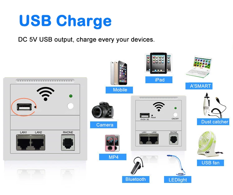 Wi-Fi-роутер, 300 Мбитс, 240 в перем. Тока доступа, с USB-зарядкой, RJ11, RJ45