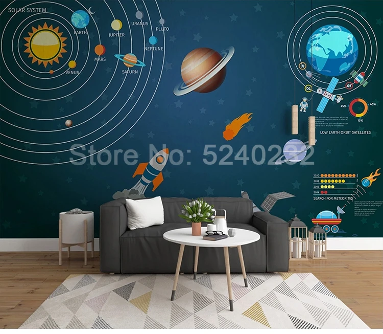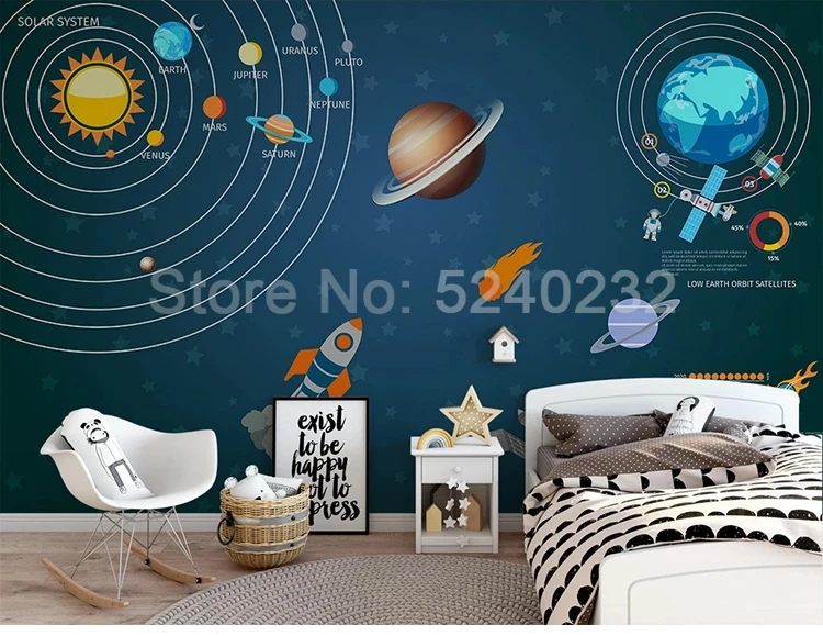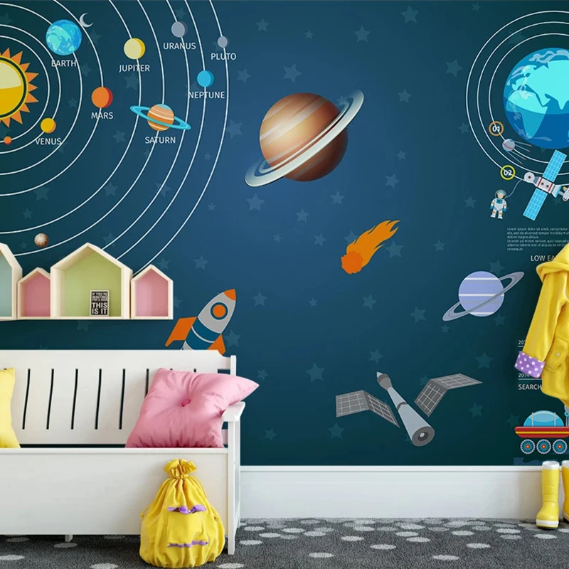 Пользовательская роспись De Parede ручная роспись мультфильм Космос Вселенная планета детская комната Спальня украшение стены фотопостер обои