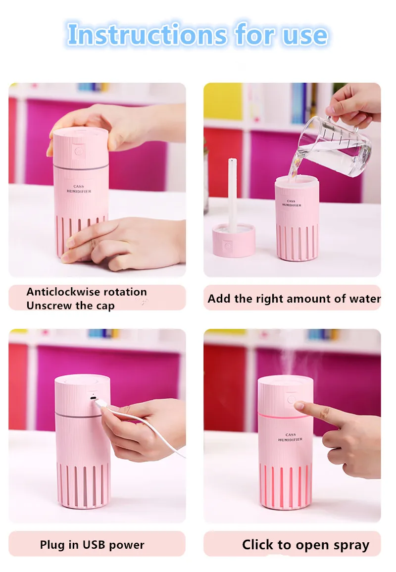 Электрический тихий увлажнитель воздуха, 320 мл, аромадиффузор эфирного масла для дома, автомобиля, офиса, Распылитель USB светодиодный светодиодное освещение