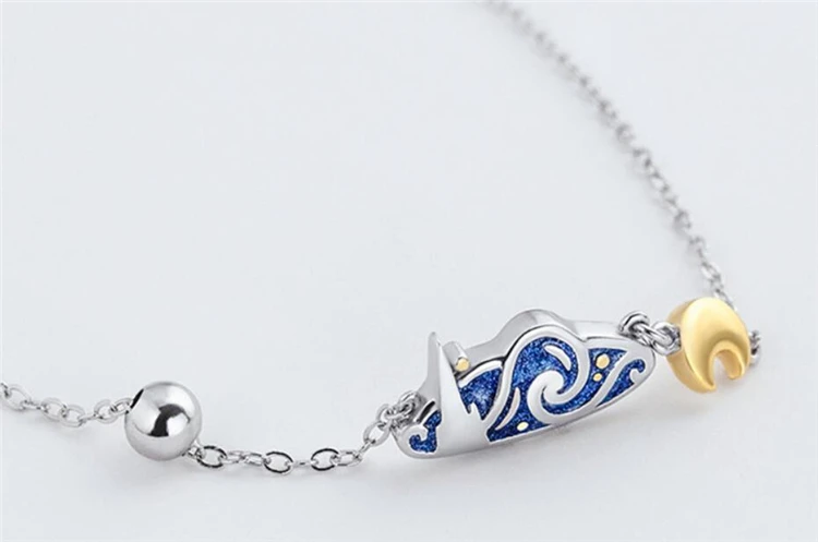 WYEAIIR женское серебряное колье с голубыми каплевидными глазурями Ван Гога, звездное небо, золотая луна, для творческого творчества