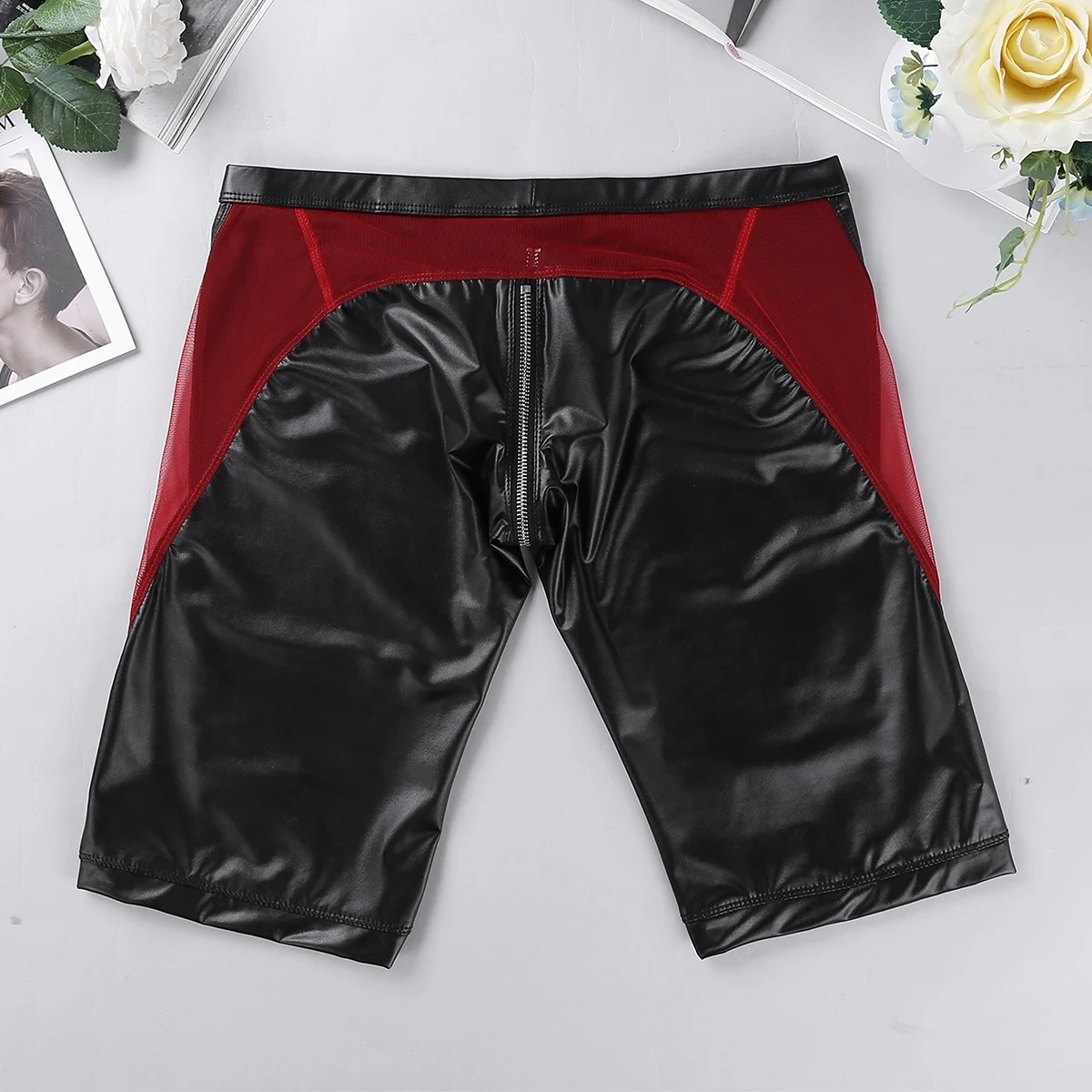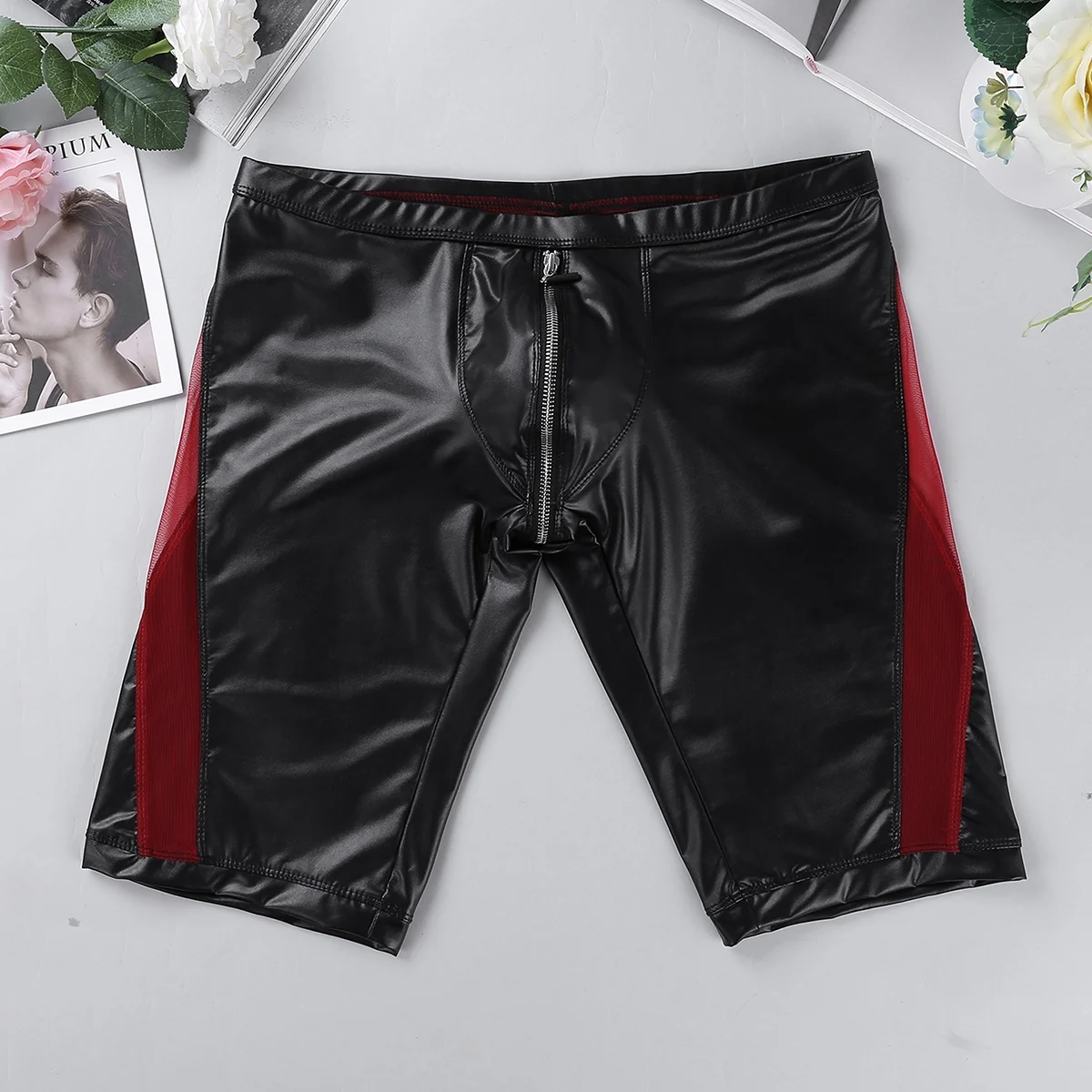 Особенности:Мужские шорты из искусственной кожи, облегающие и обтягивающие, очень легкие и крутые.Эластичный пояс и низкая посадка, красная сетка, застежка-молния в промежности, застежка без застежки.Очень мягкий и удобный, хорошо тянущийся, стильный и модный стиль сделает вас более привлекательной.Идеально подходит для ночного белья и самостоятельного отдыха, фестивалей, вечеринок, ночного клуба и т. Д.Пожалуйста, внимательно проверьте таблицу размеров перед покупкой. Ручная стирка в холодной воде.