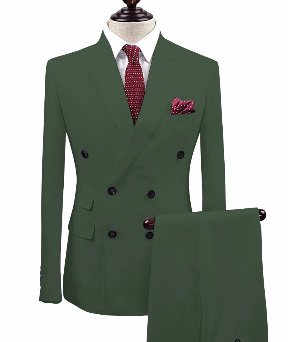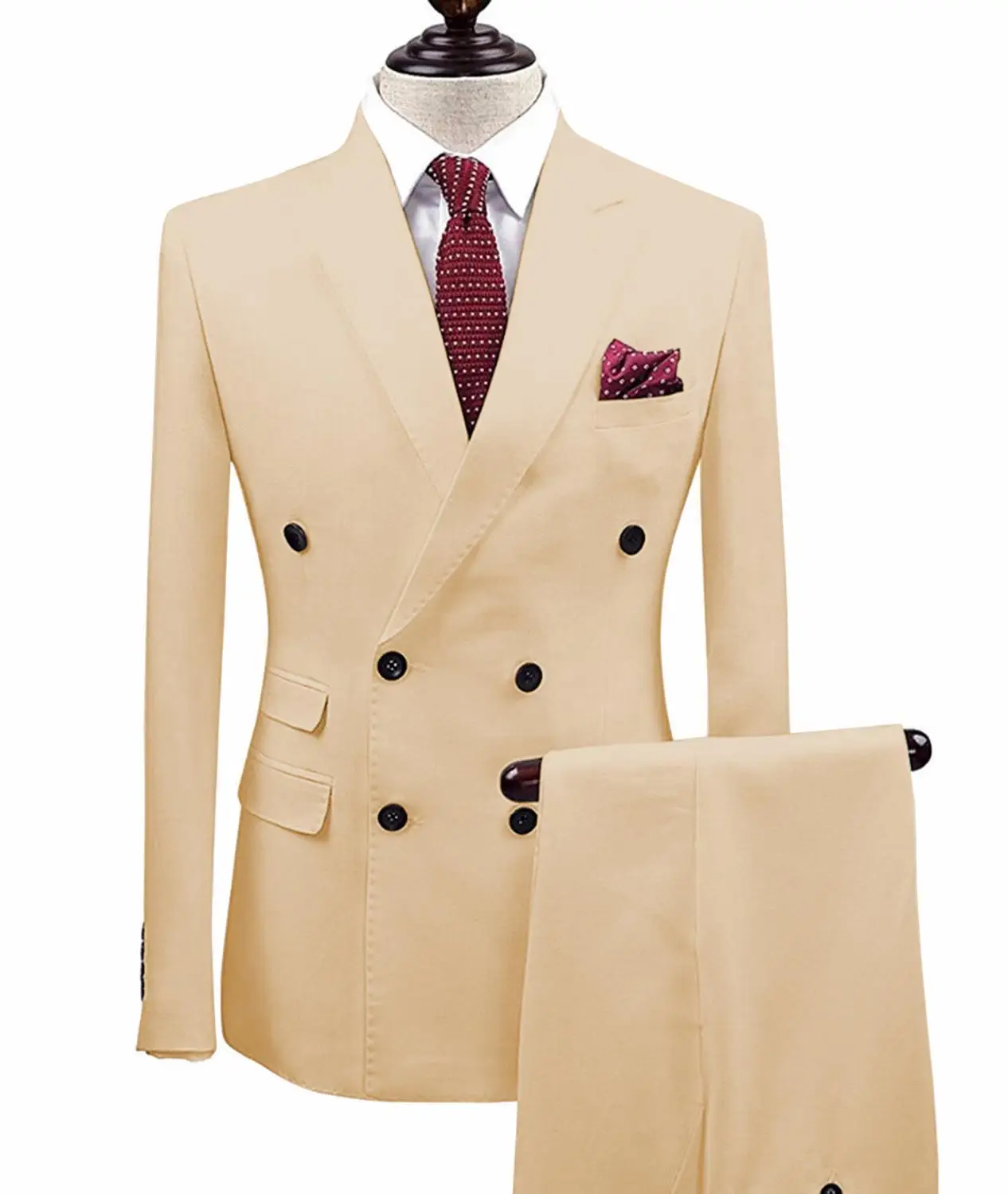 Мужской костюм из 2 предметов, двубортный мужской костюм с лацканам...