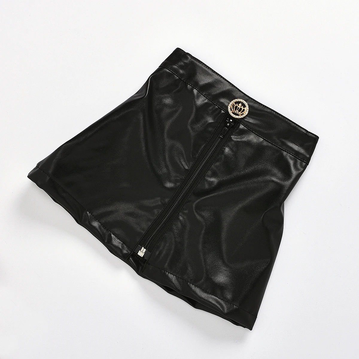 2 шт., детская демисезонная мини-юбка из ПУ кожи, с длинным рукавом