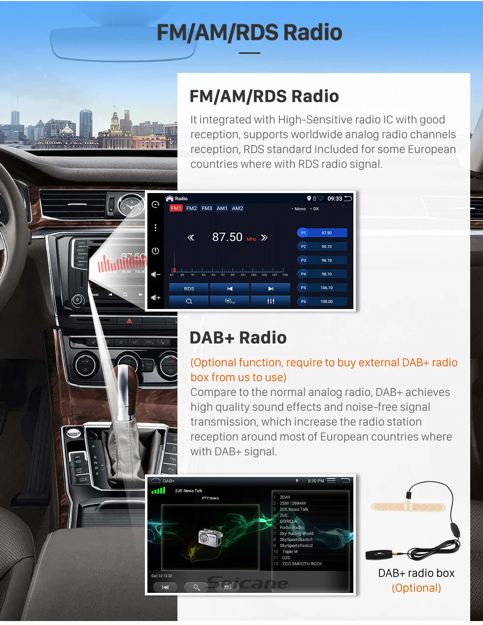Универсальный Автомобильный мультимедийный плеер Seicane, Android 10.0 RAM, 2 Гб ROM, 32 ГБ, 10,1 дюйма, GPS, HD, вращающийся на 180 экран, поддержка Carplay DVR